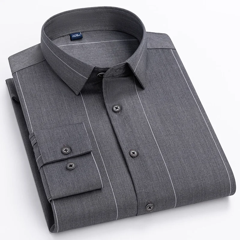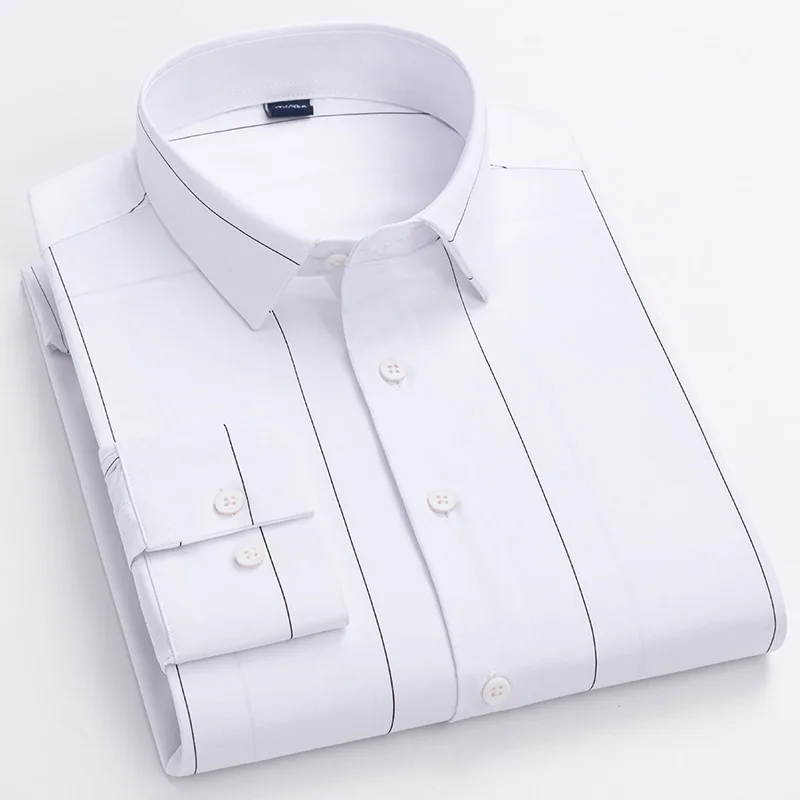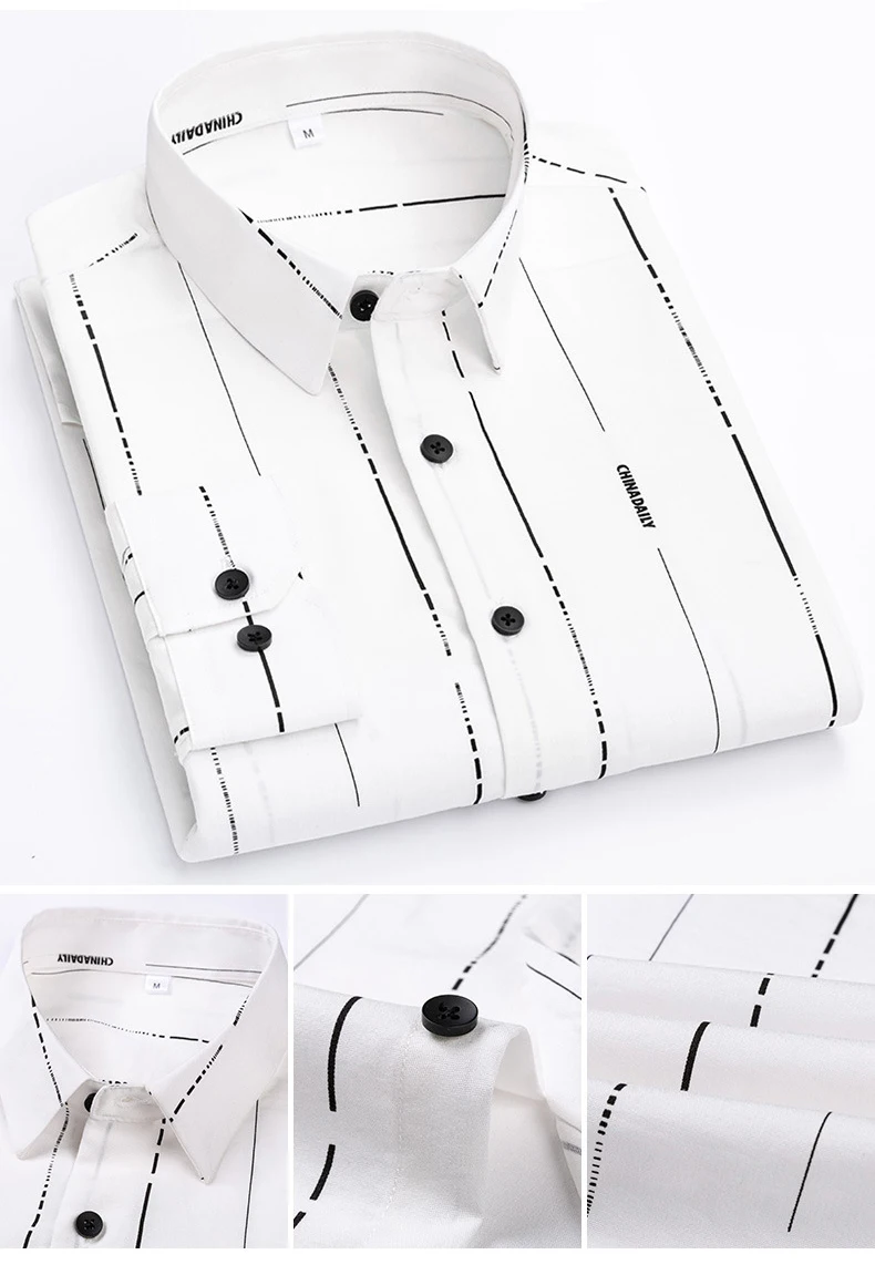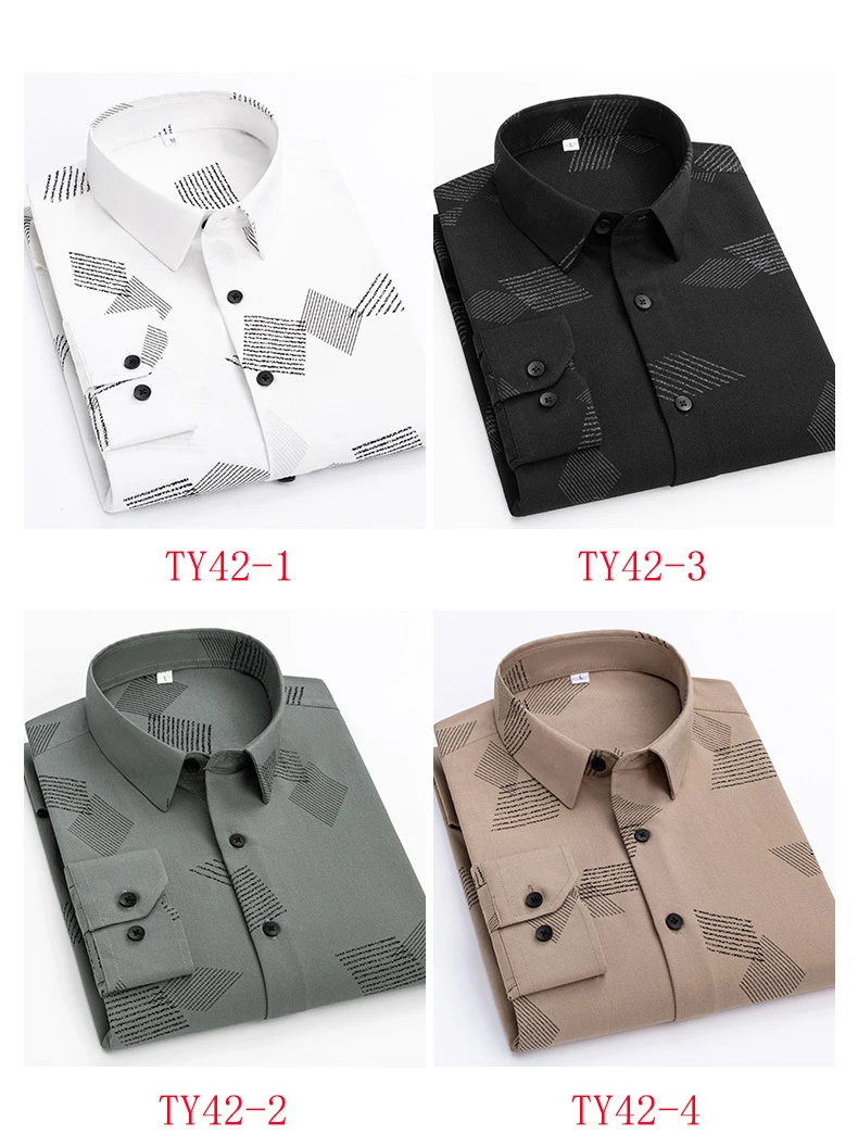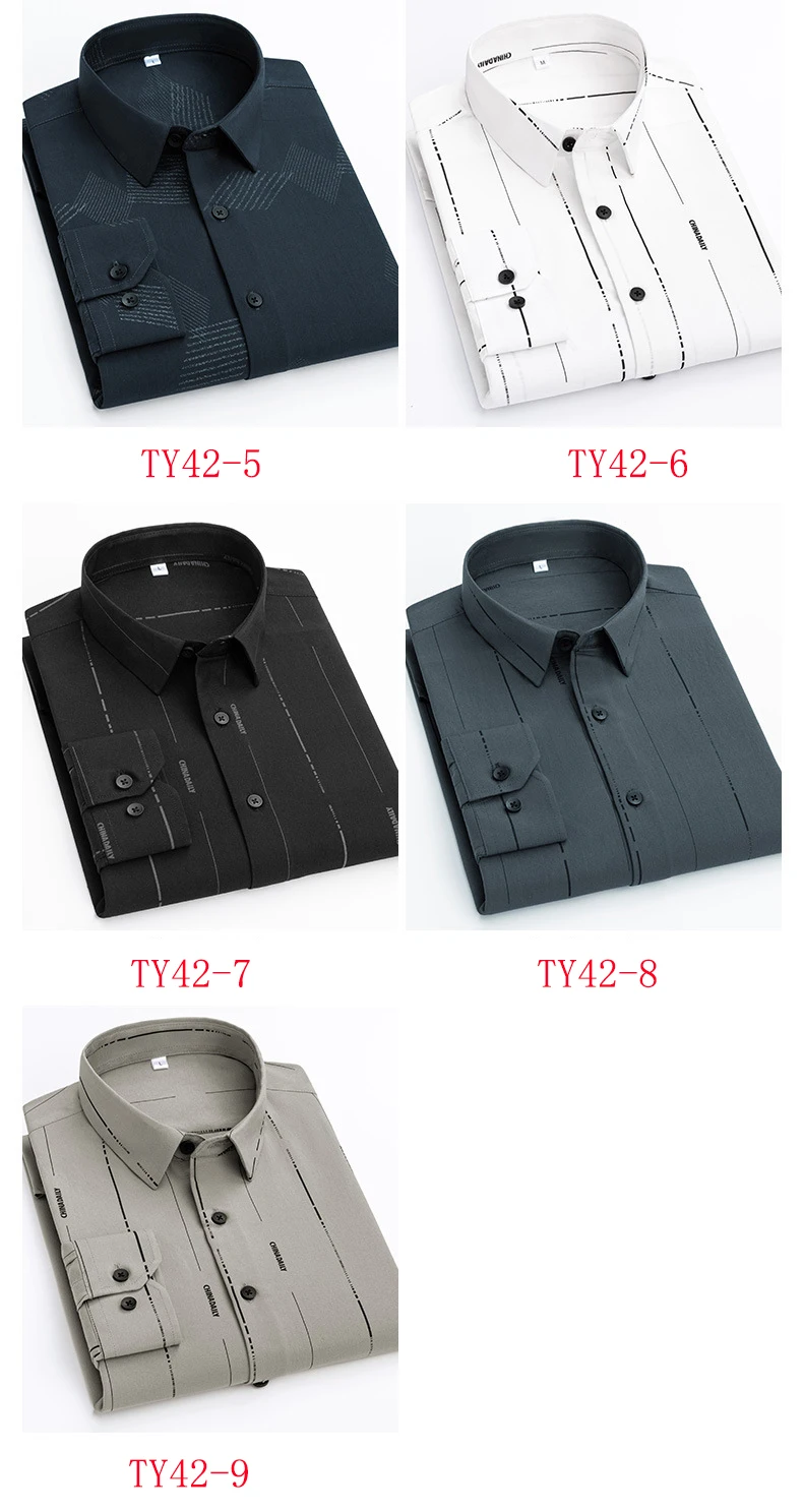 Bamboo Fiber Stretch Shirt Men's Office Business Elegant Non-iron Fashion Printing Long-sleeved Top Casual Simple Shirt for Men