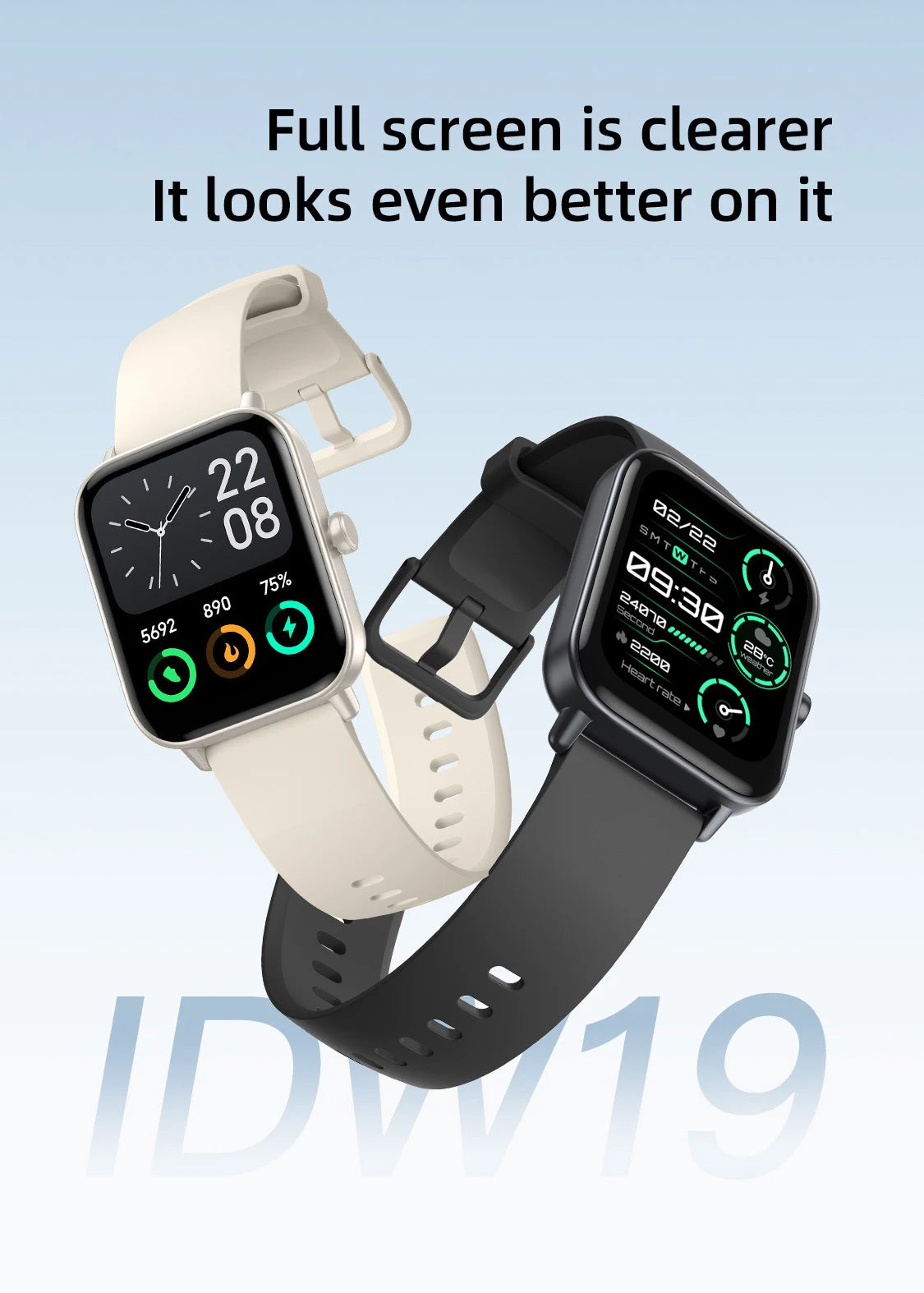【1.8 Inch Screen】: The IDW19 smart watch with 240*284 high-definition large screen, the case is fine matte effect, partial gloss, injection blue natural color, more anti-dirty, morecorrosion-resistant, mirror polished, showing a crystal clear texture, low-key and subtle.