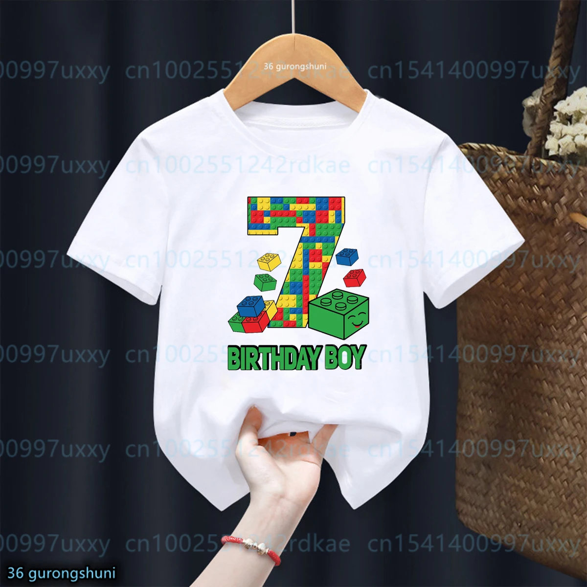 Building Blocks Birthday Boys T-shirt Funny Block Graphic Print Toddler T-shirt Gifts kids Birthday Party Clothing T-shirt