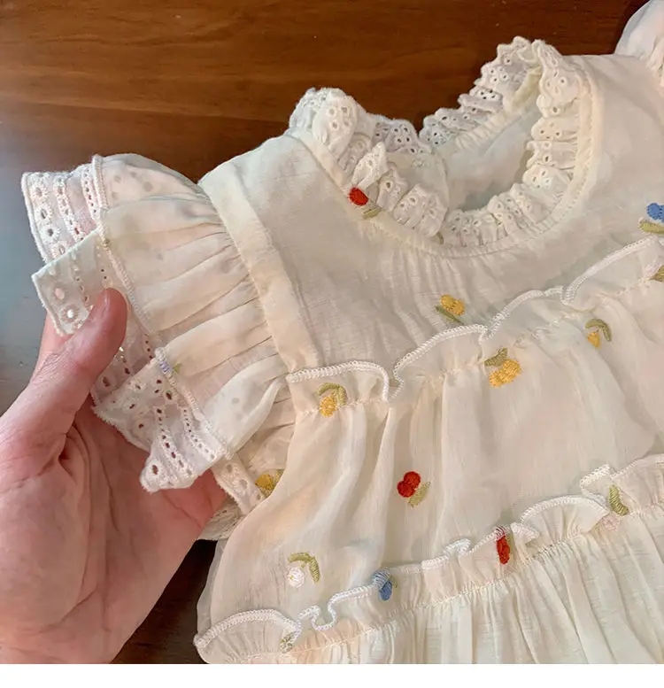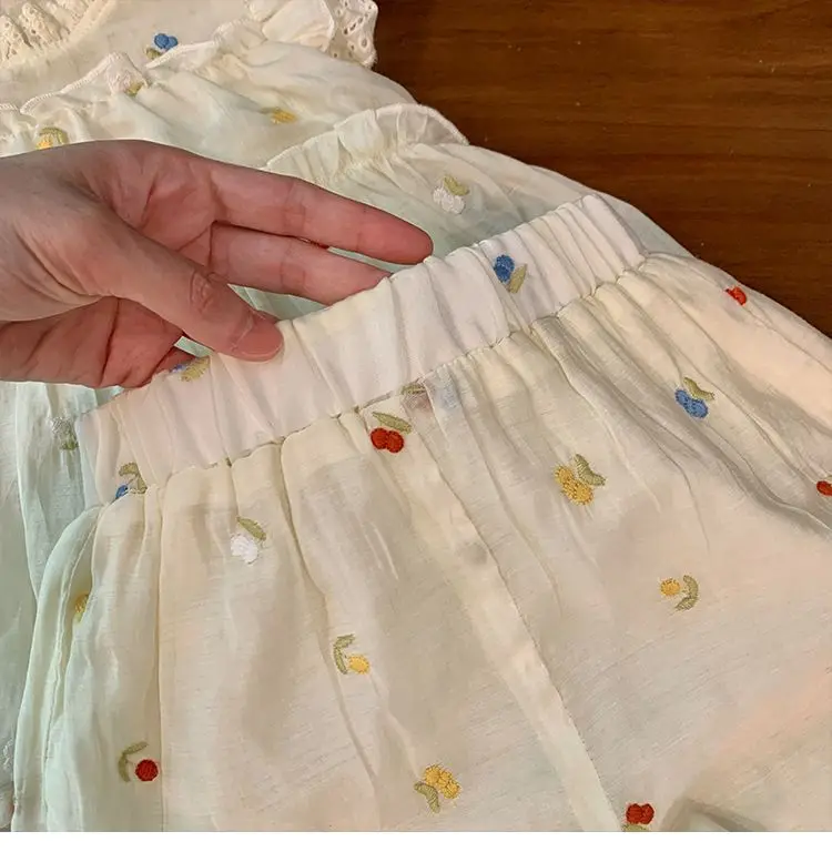 Children's Clothing Sets Floral Embroidery Lace Sleeveless Top + Shorts 2 Piece Set Toddler Girl Clothes for 2 To 7 Years