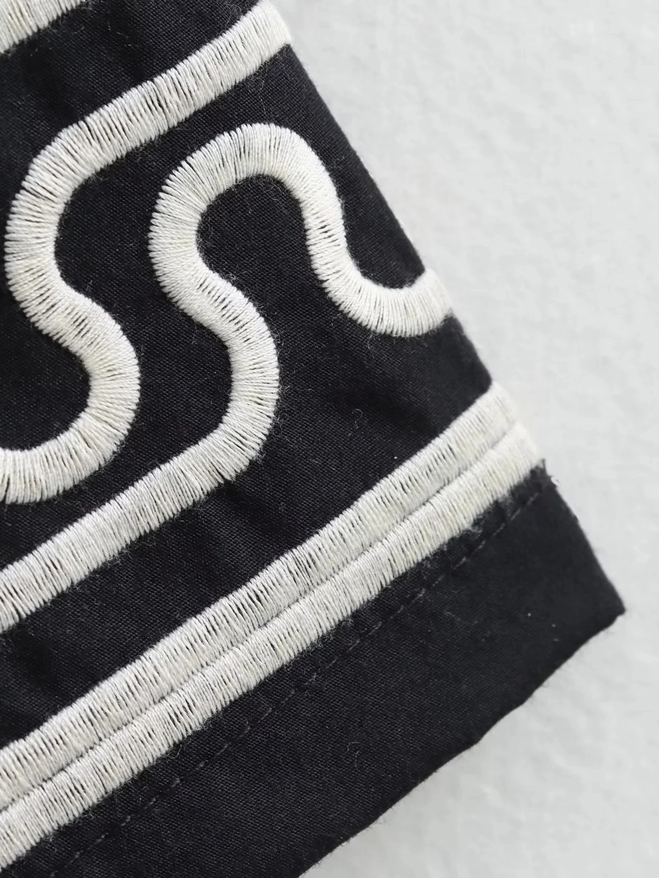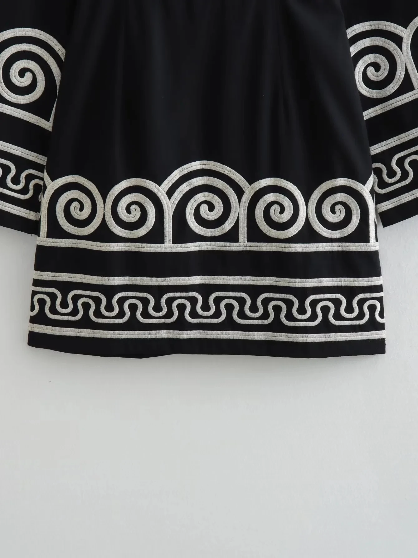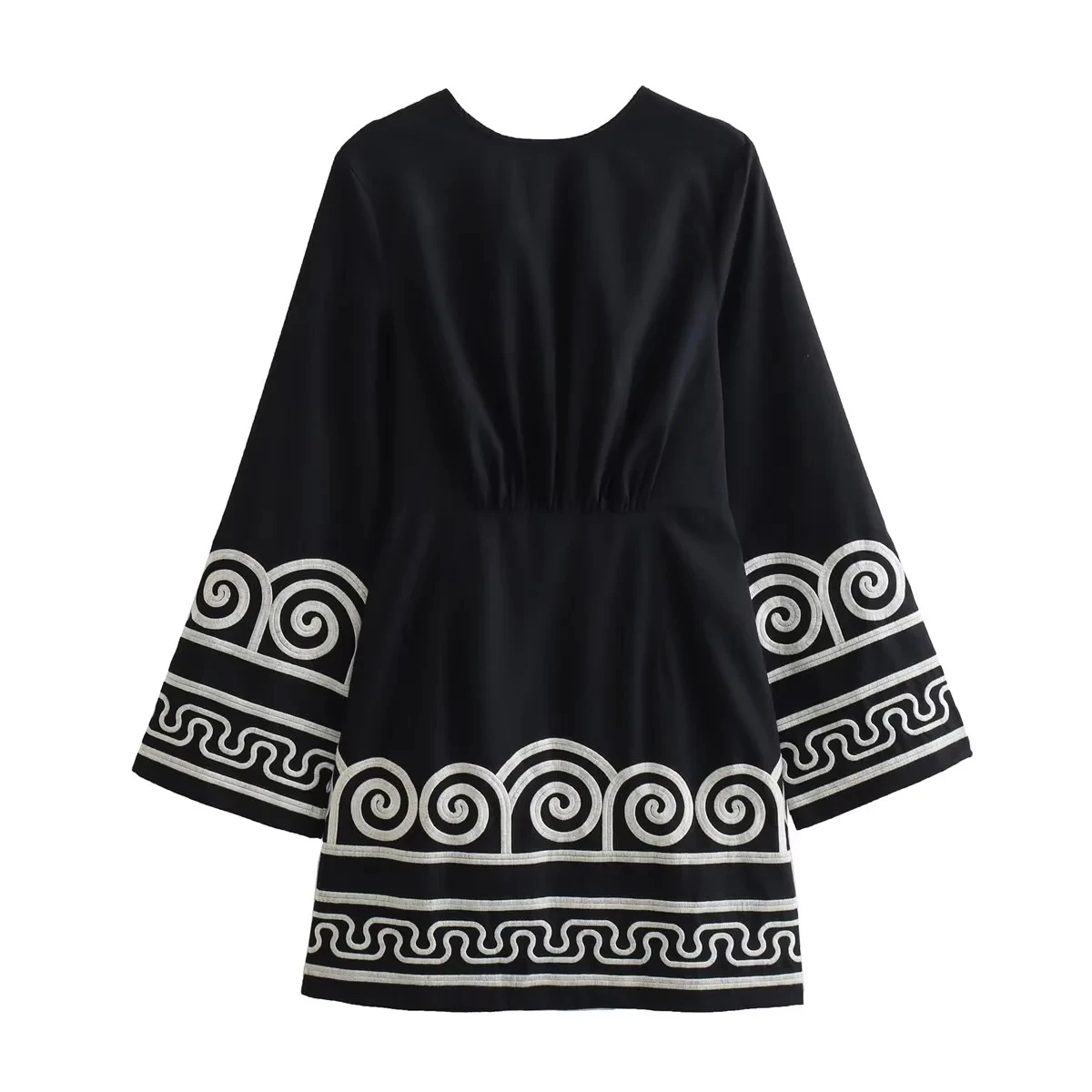 EDSA Women Fashion Black Embroidery Mini Dress New Long Sleeve High Waist A-Line Short Dresses Casual Girls Streetwear