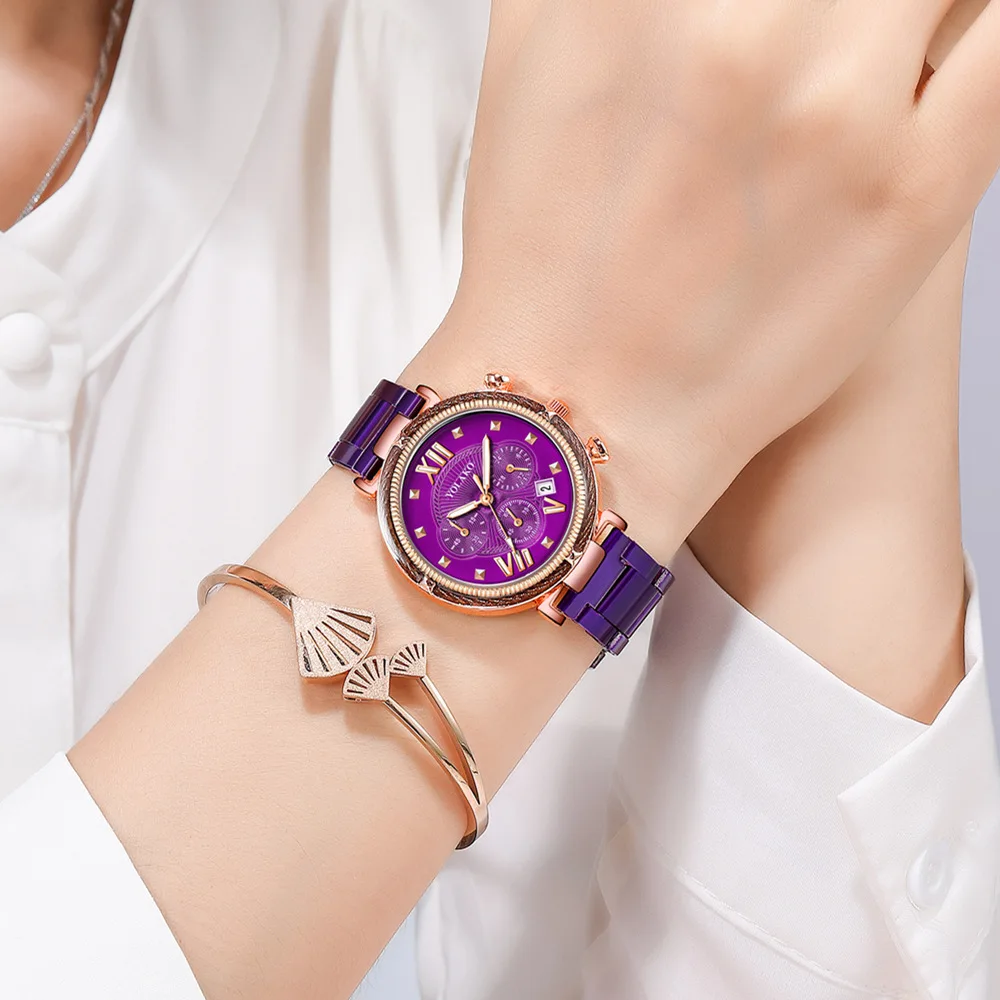 Fashion 5pcs Watch Set Women Blue Watches Women Stainless Steel Auto Date Quartz Wristwatches Montre Pour Femme Reloj Mujer