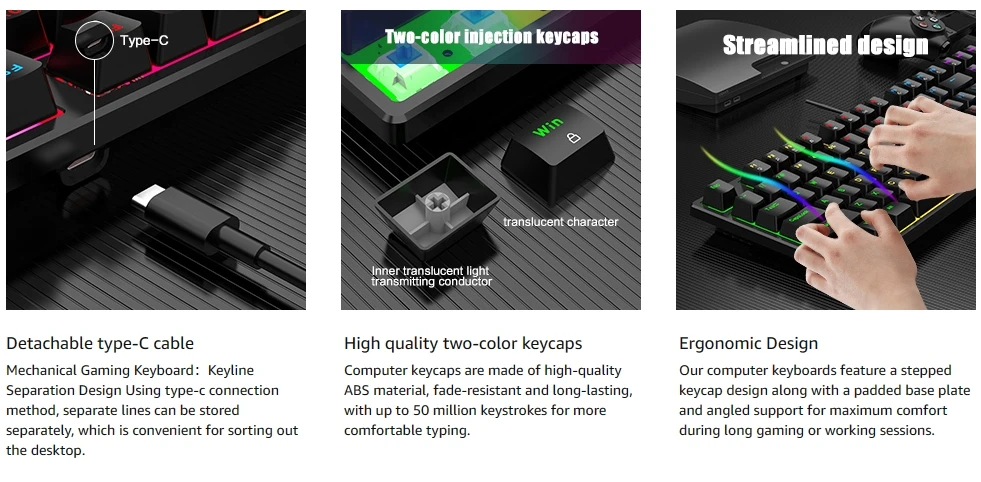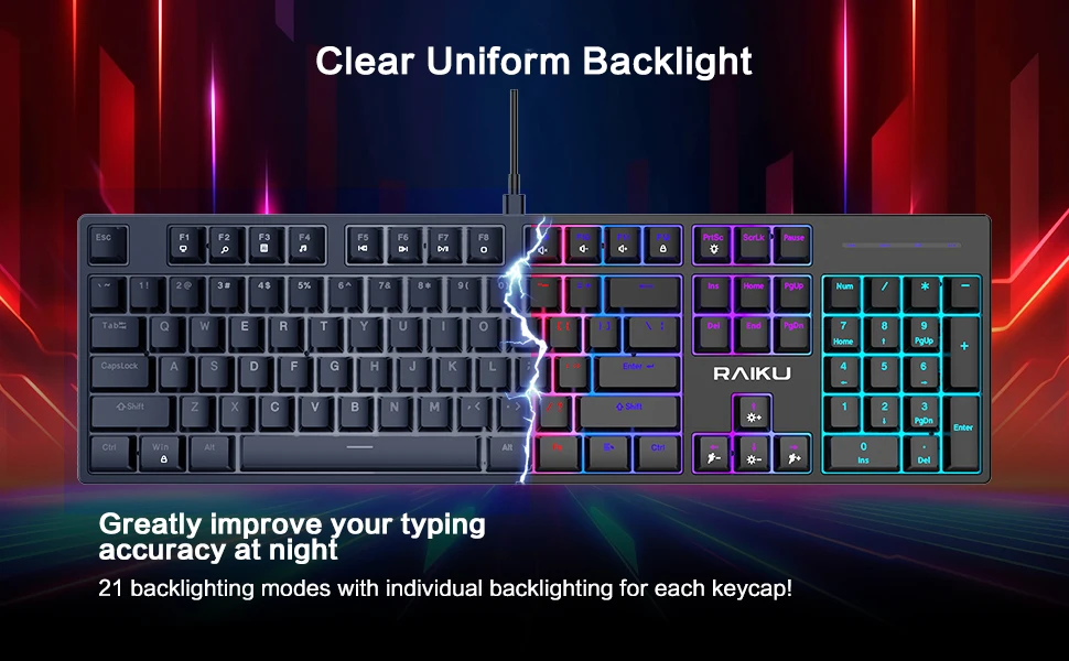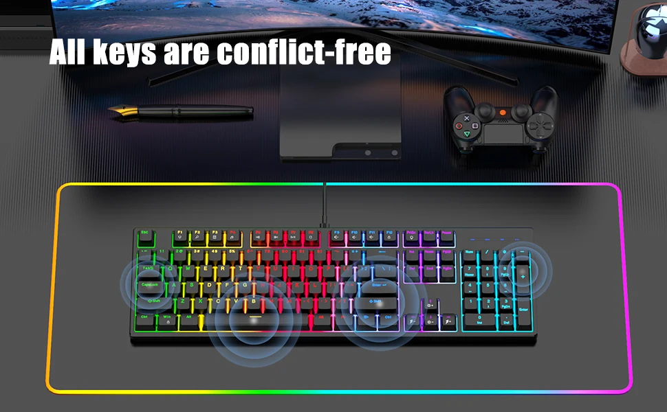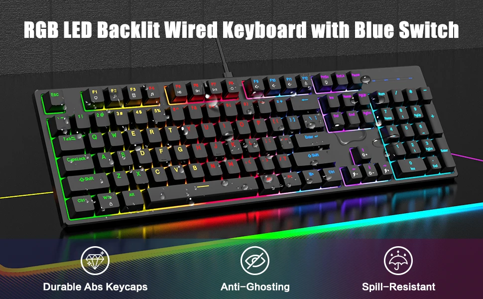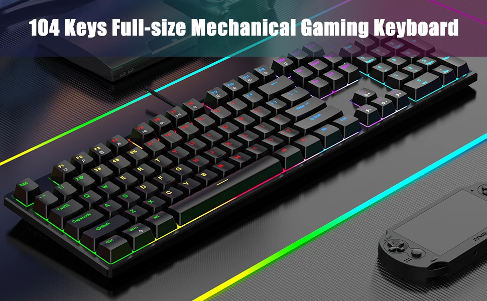 Gaming Mechanical Keyboard, Type-c Wired Keyboard/Blue Switch, Durable Abs Keycaps/104-Key/21 RGB Modes, LED Backlit