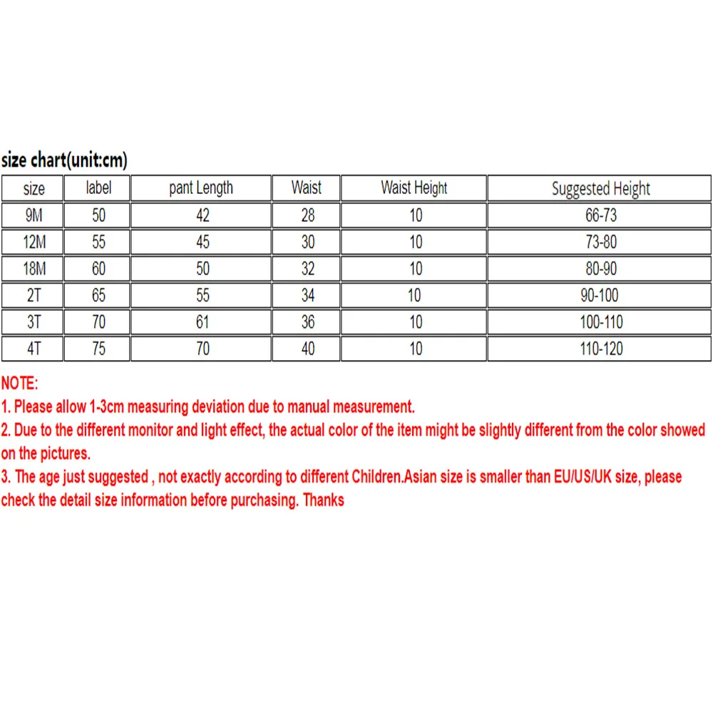 3. The age just suggested , not exactly according to different Children.Asian size is smaller than EU/US/UK size, please check the detail size information before purchasing. Thanks