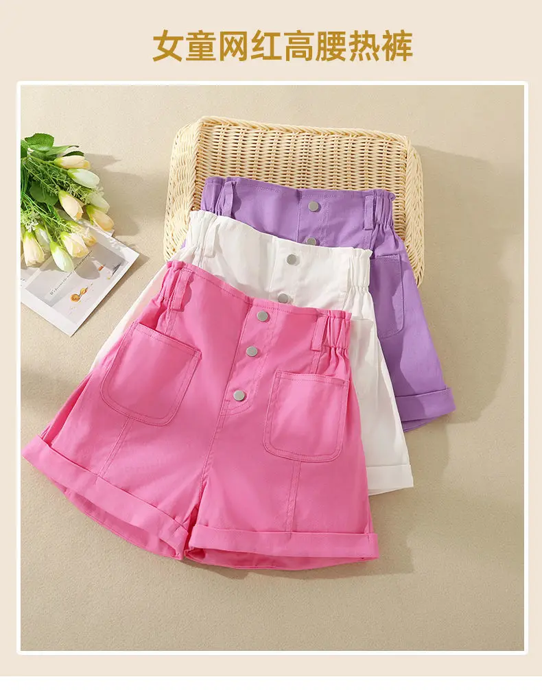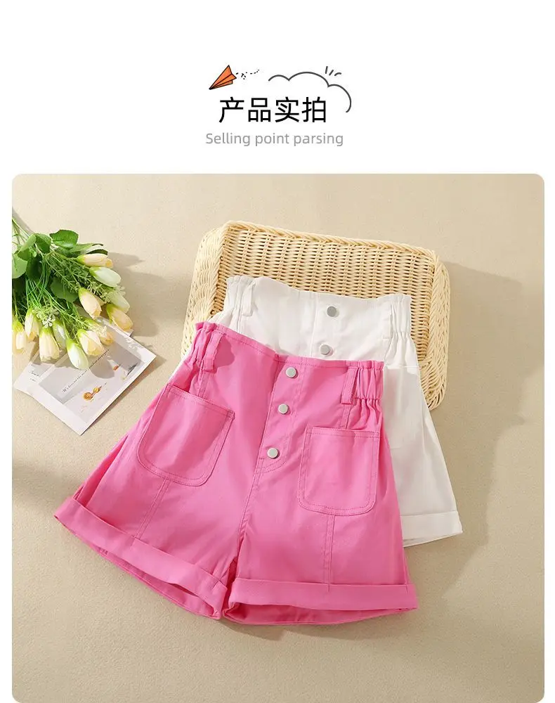 Girls' Shorts Summer New Fashionable Girls' Thin Casual Pants Children's Outwear Summer Medium to Large Children's Hot Pants