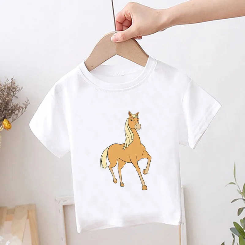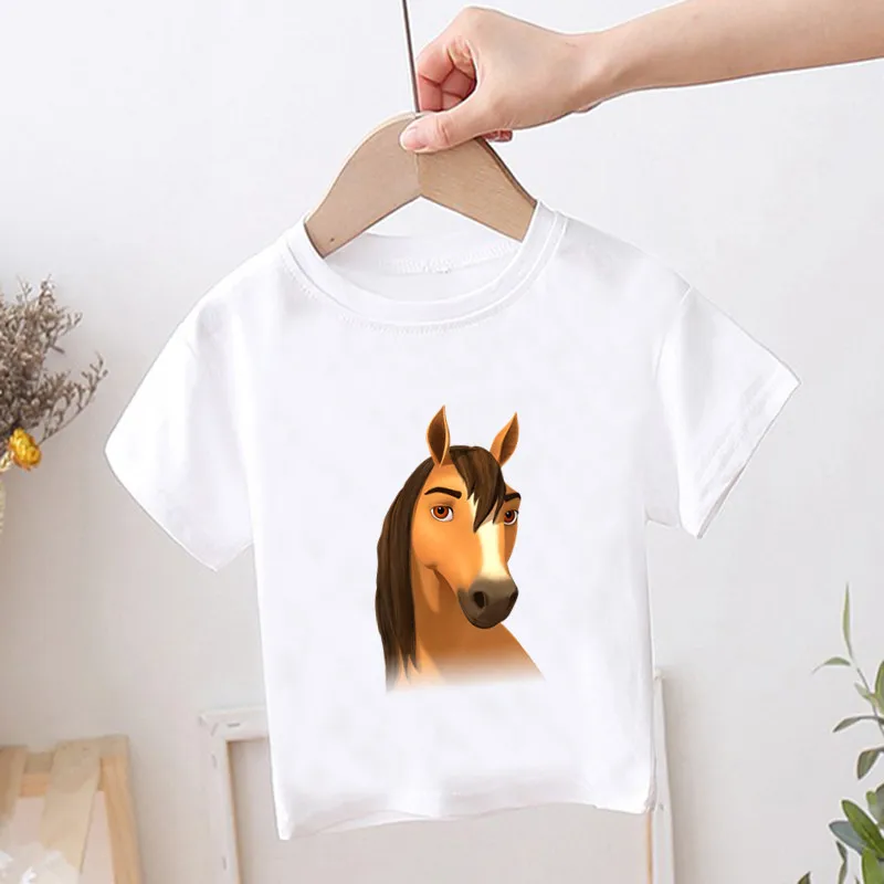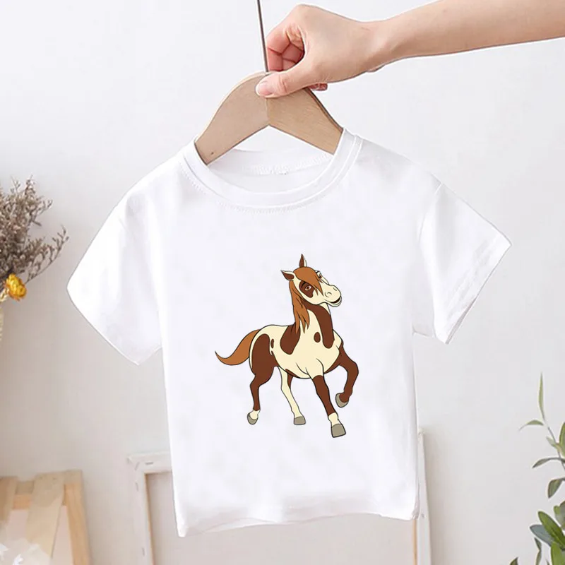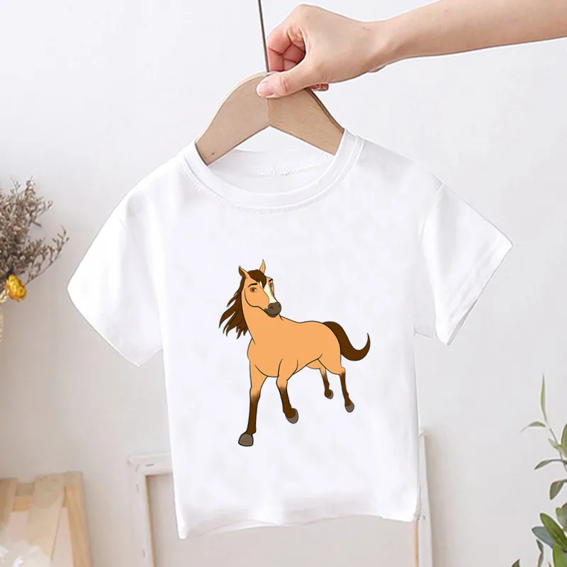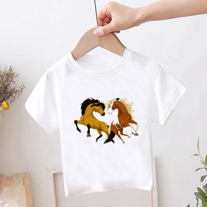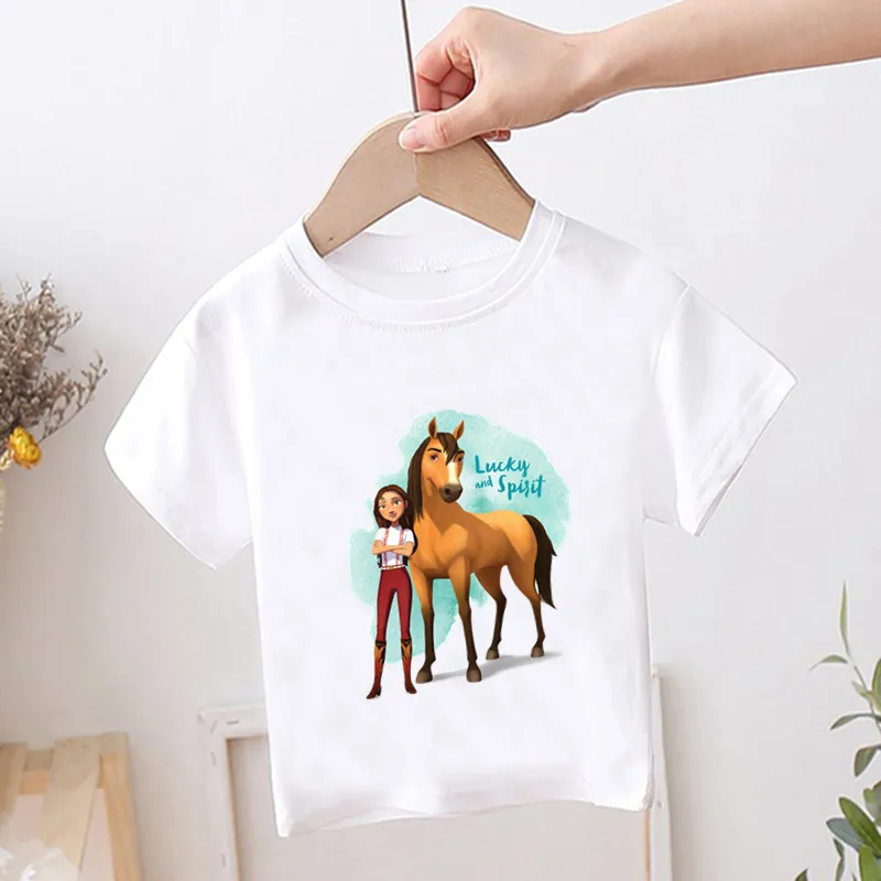 Hot Sale Lucky & Mustang Spirit Horse Cartoon Children T-shirt Girls/Boys Funny Cute Baby Clothes Kids Summer T shirt Boys Tops