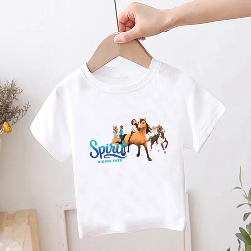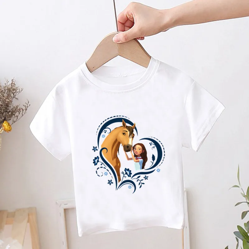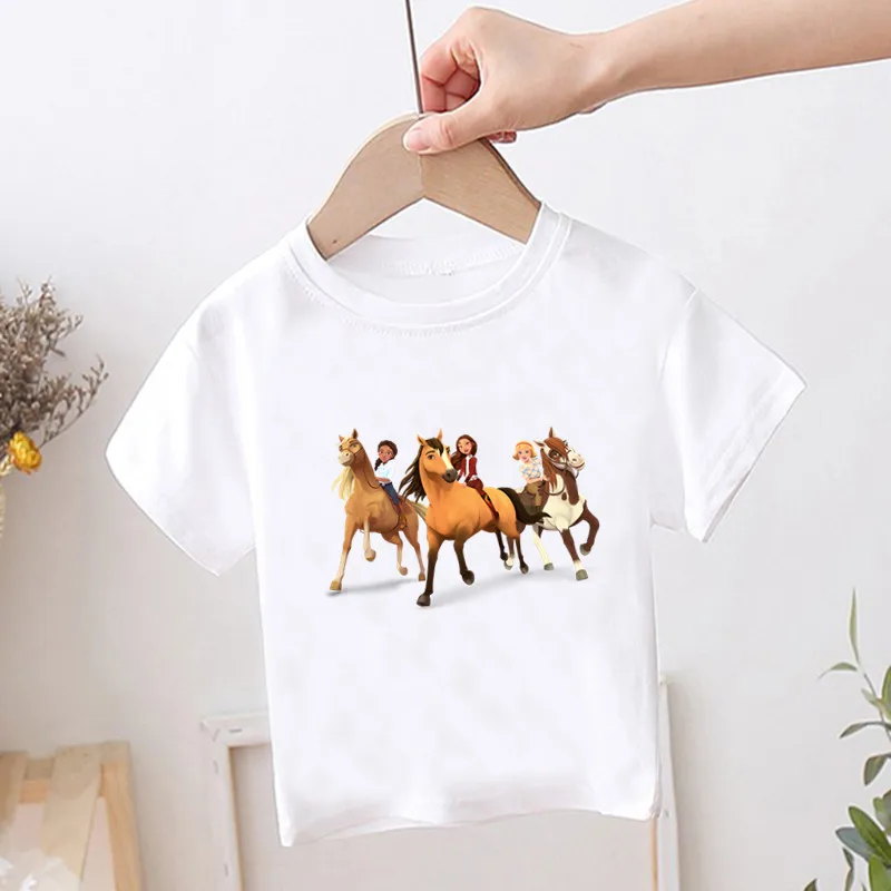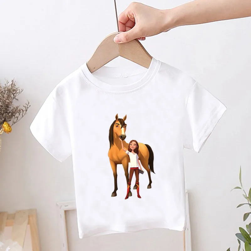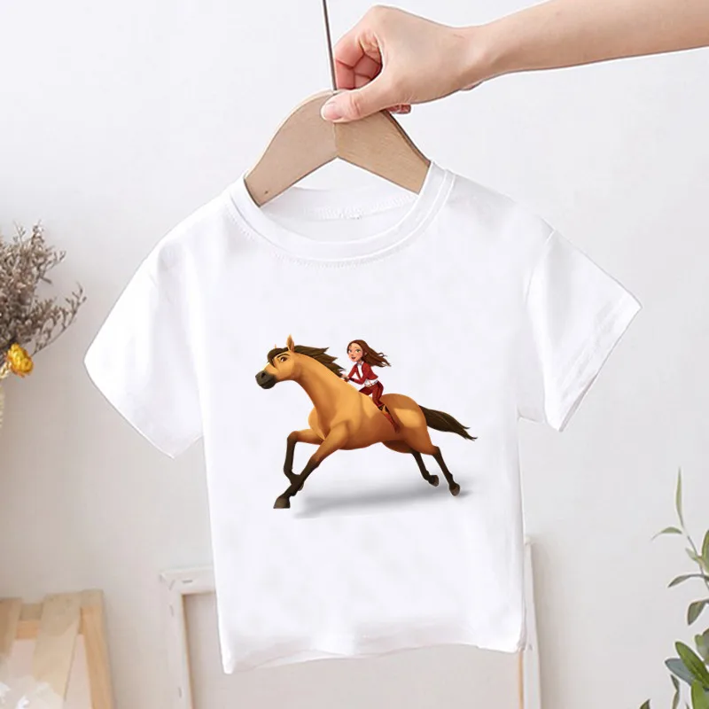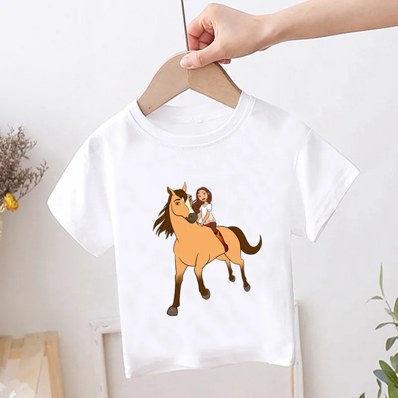 Hot Sale Lucky & Mustang Spirit Horse Cartoon Children T-shirt Girls/Boys Funny Cute Baby Clothes Kids Summer T shirt Boys Tops