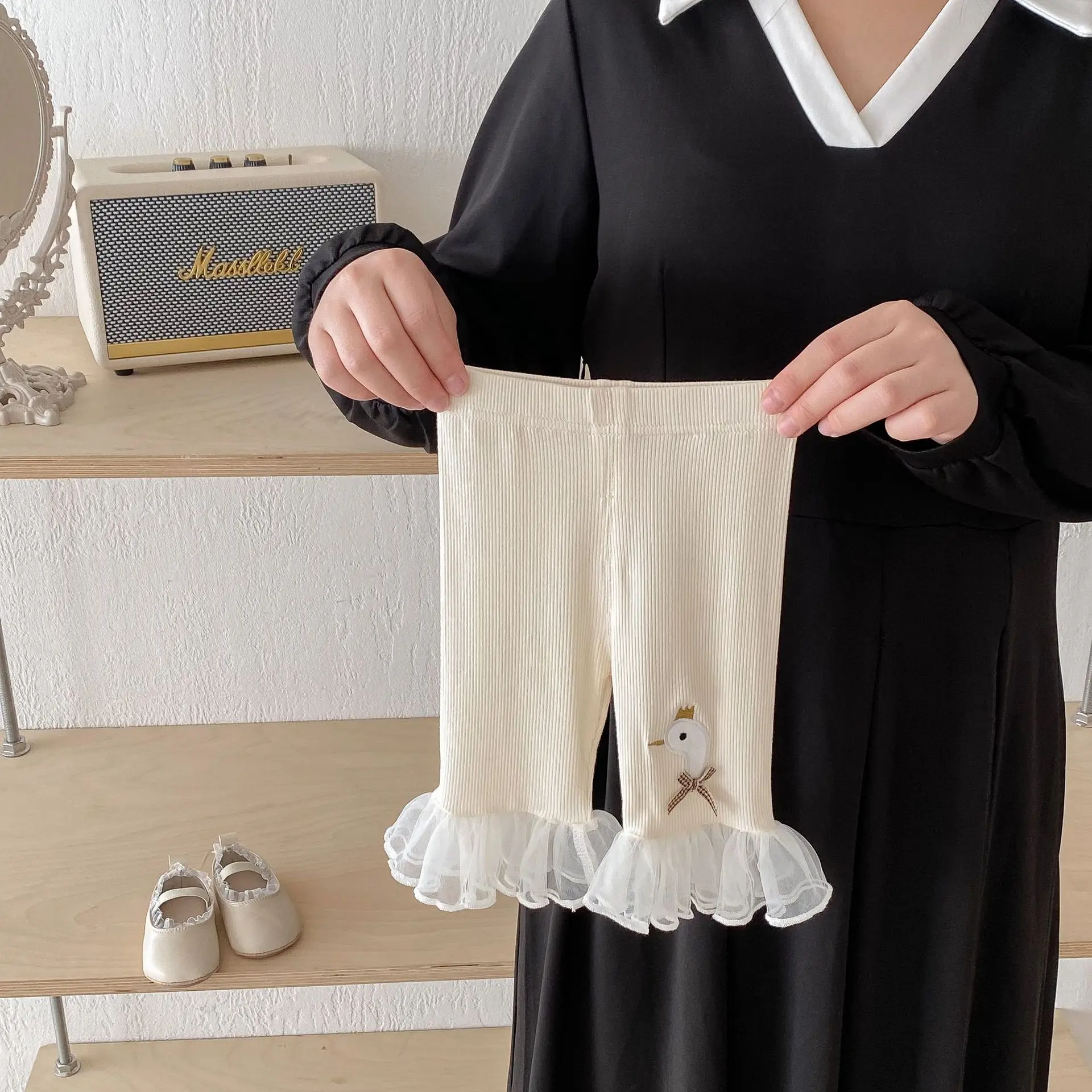 Kids Girls Leggings Summer Baby Girl Leggings Toddler Lace Patchwork Thin Pants 0-5Y Children's Cute Swan Pattern Bell-bottoms