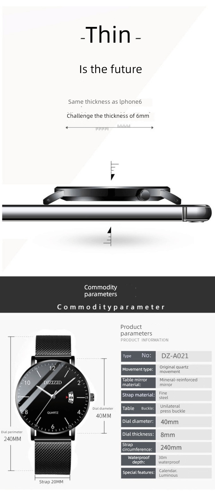 表盘厚度: 8mm