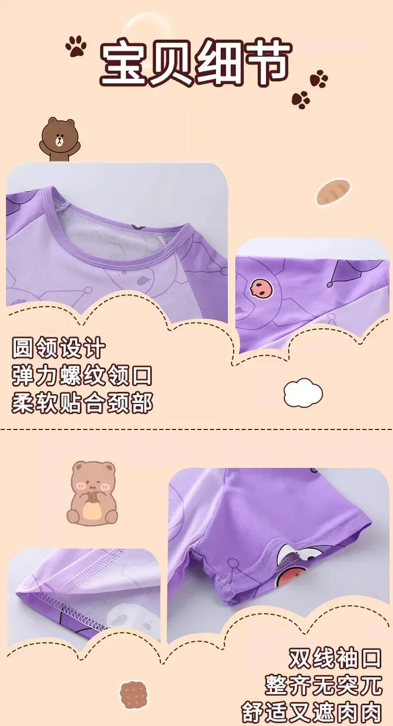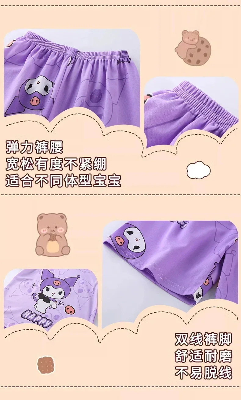Miniso 2024 Summer Children's Pajamas Anime Cartoon Cinnamoroll Kuromi Kids Milk Silk Sleepwear Girl Boy Pijamas Sets Gift