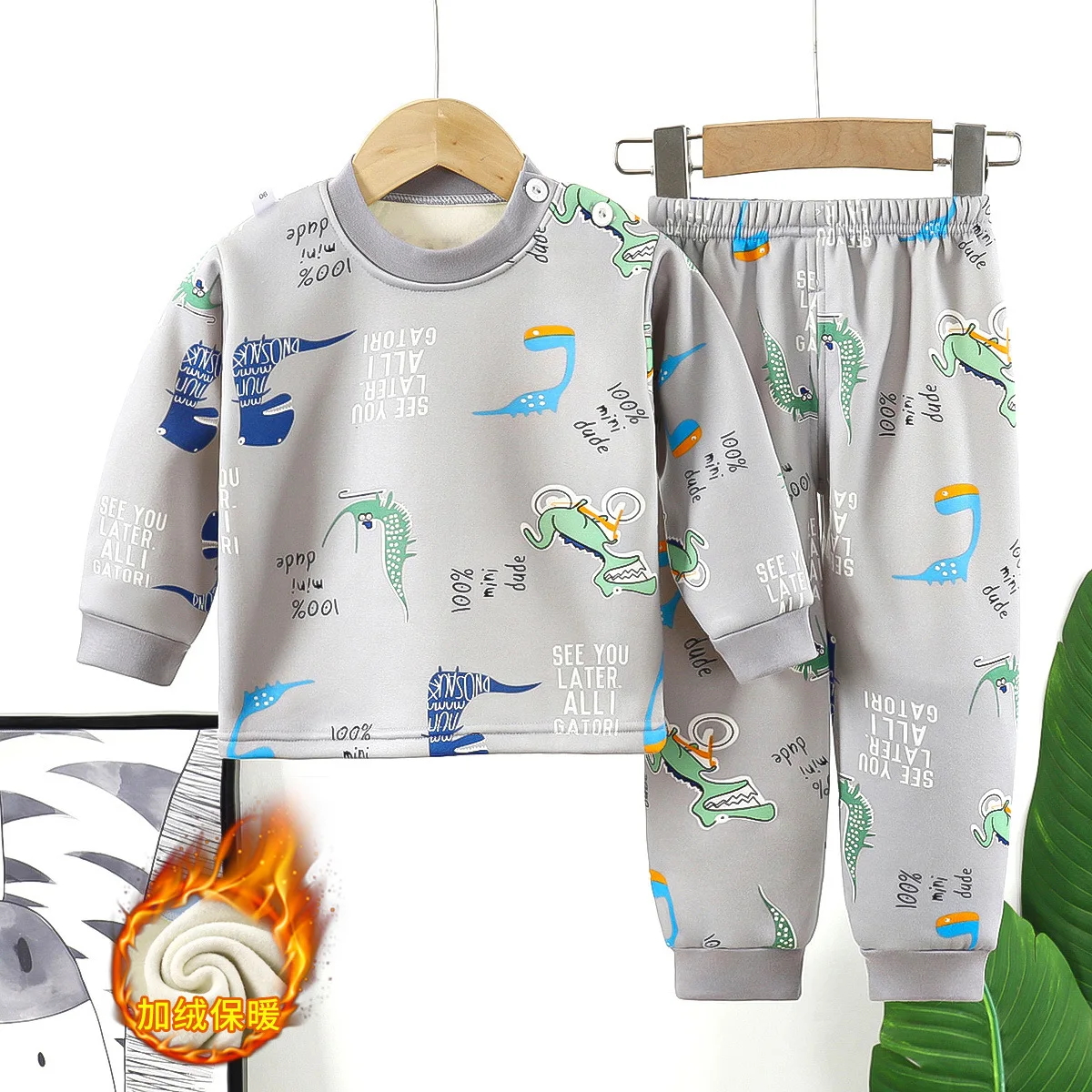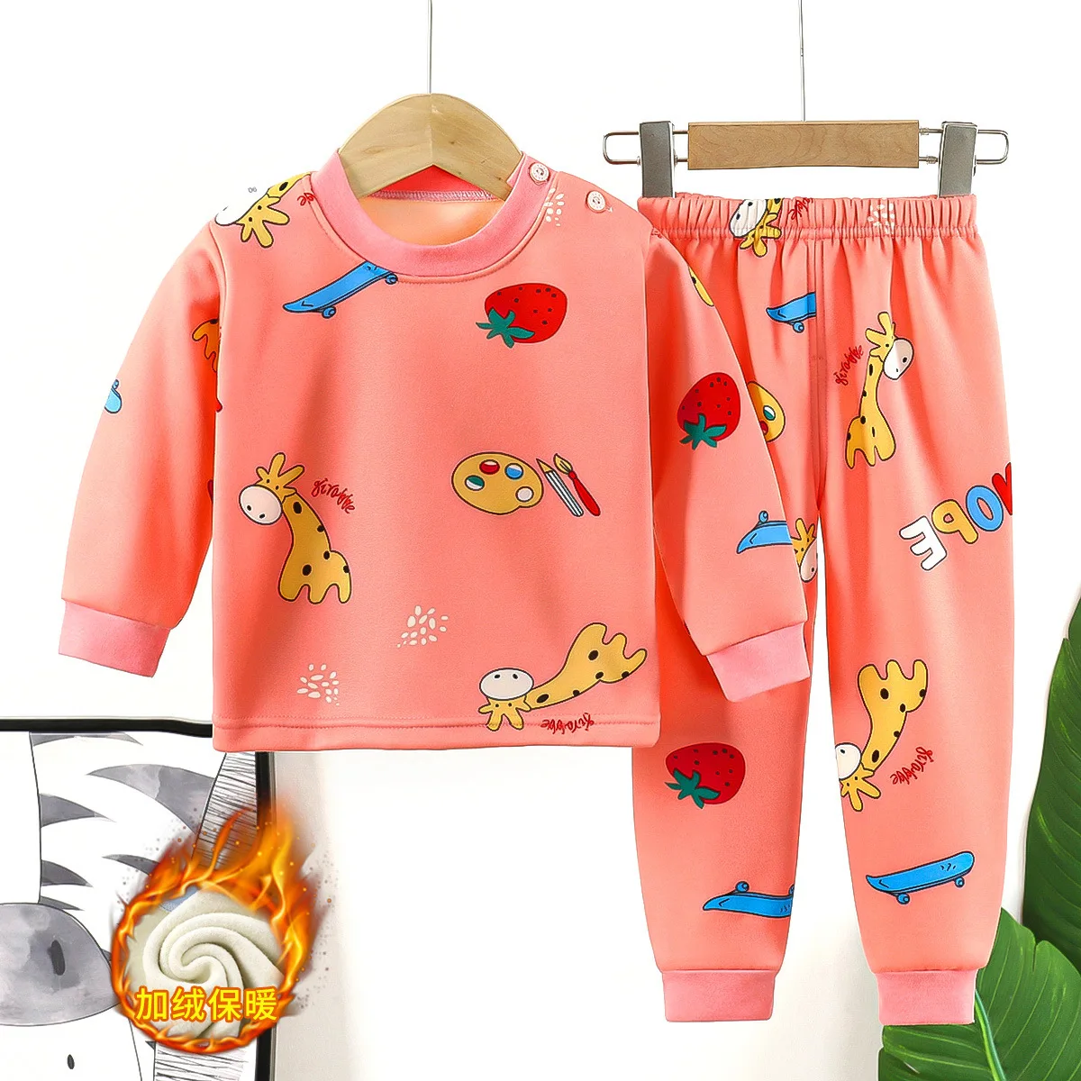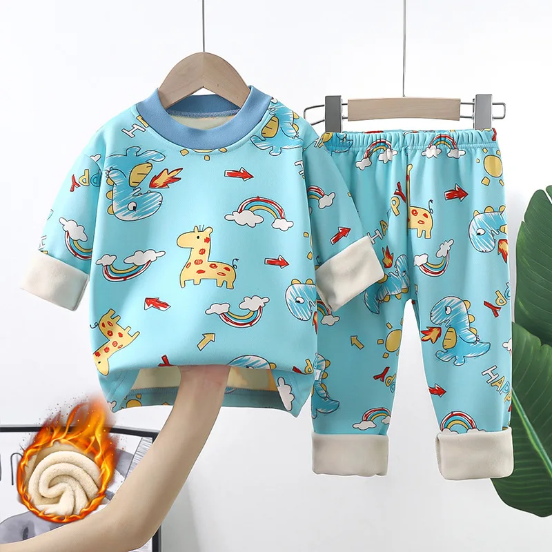 New Autumn Winter Kids Thicken Warm Pajamas Baby Boys Girls Cartoon Long Sleeve Pyjamas Toddler Sleepwear Clothing Sets
