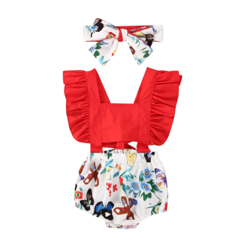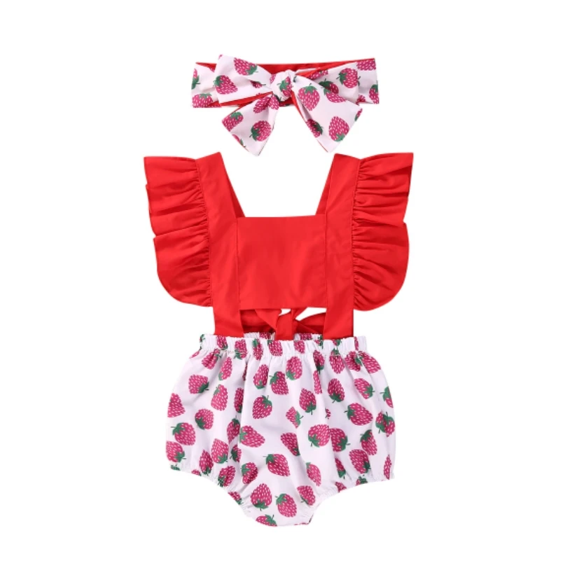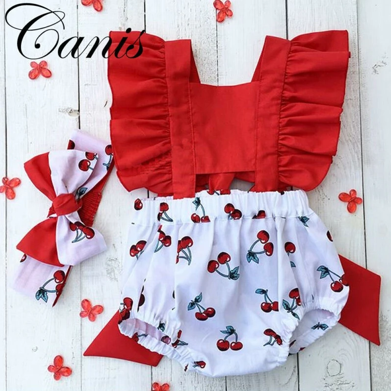 New Arrival 2pcs Red Flower Baby Clothing Newborn Baby Girls Lace Backless Romper Dress Jumpsuit Outfits Clothes 0-24M