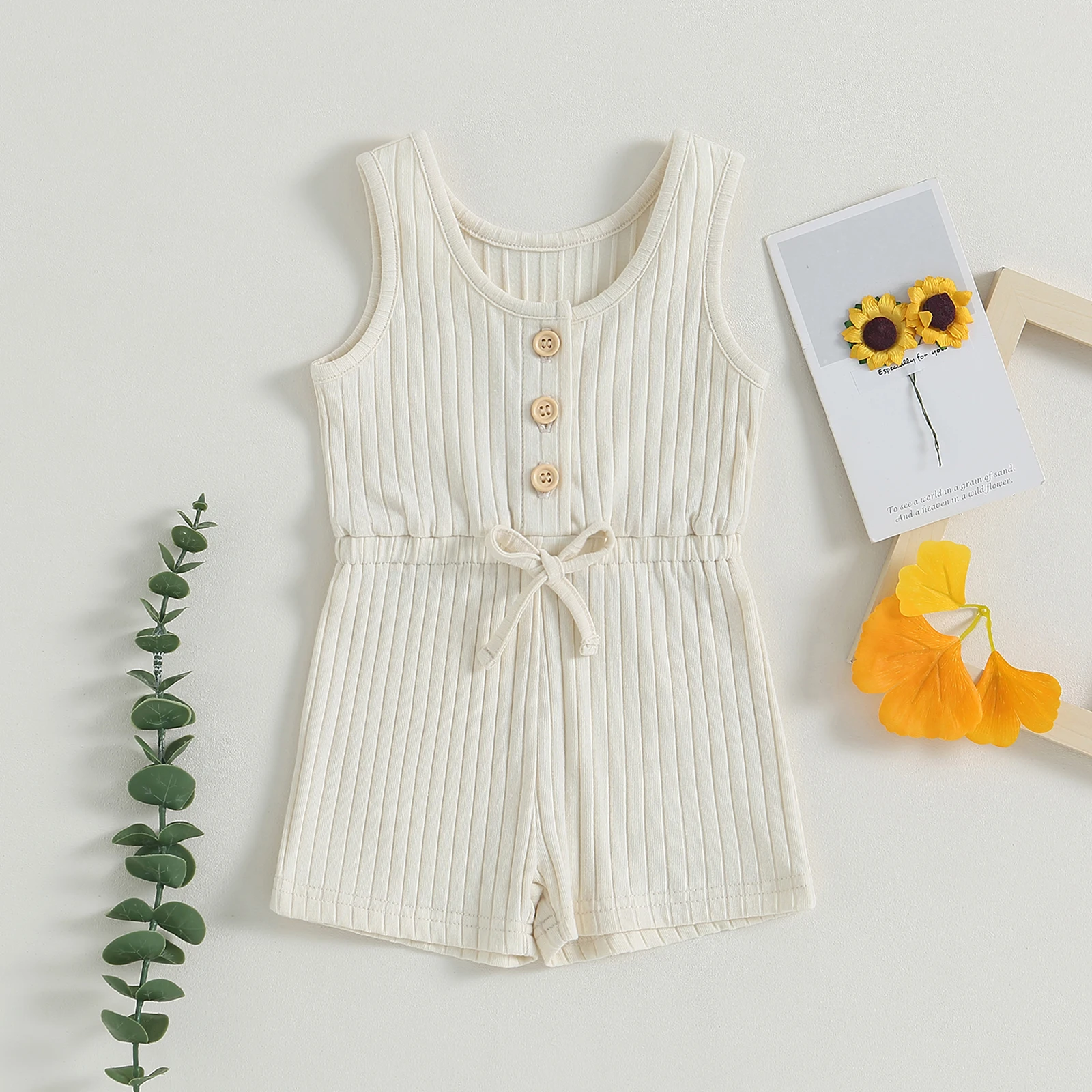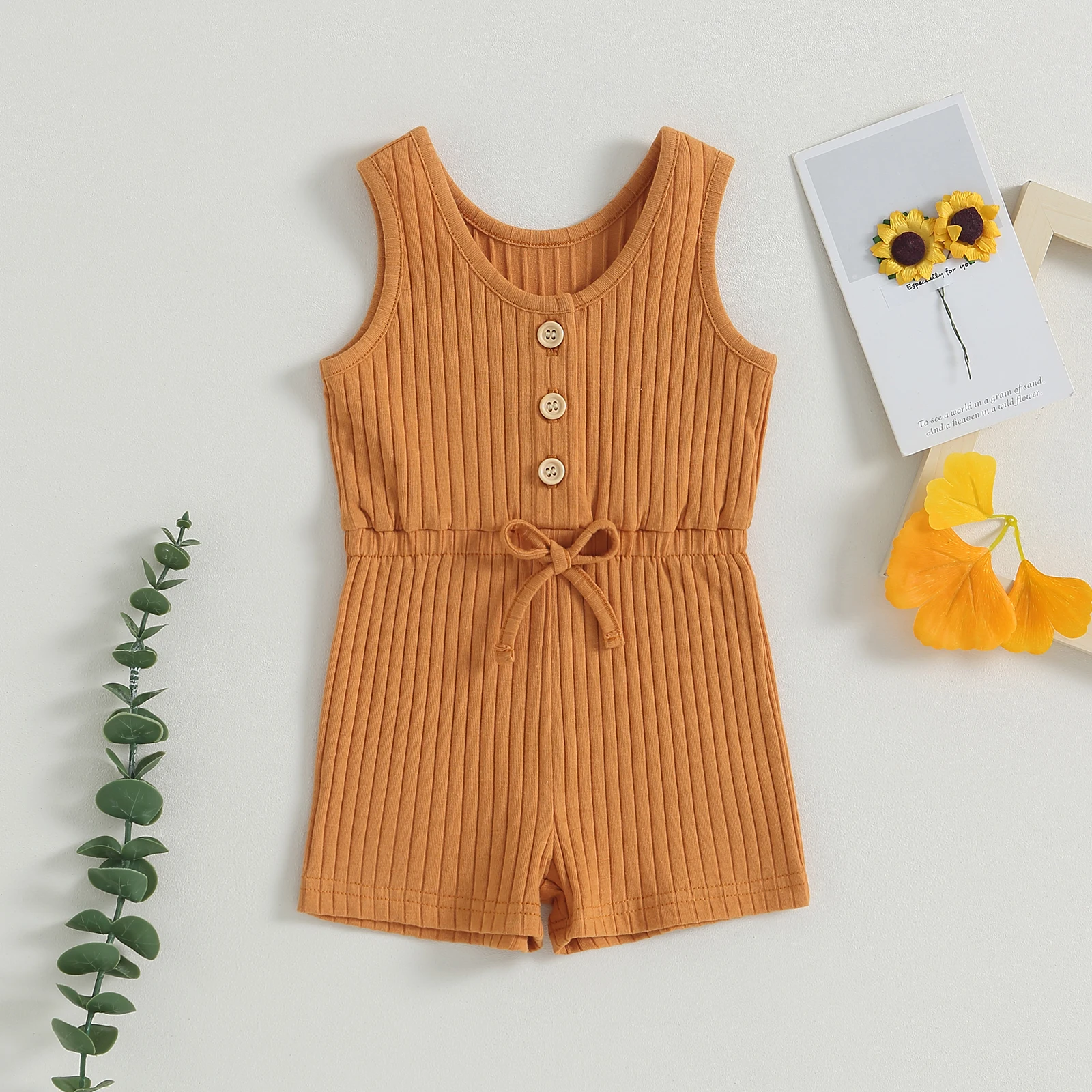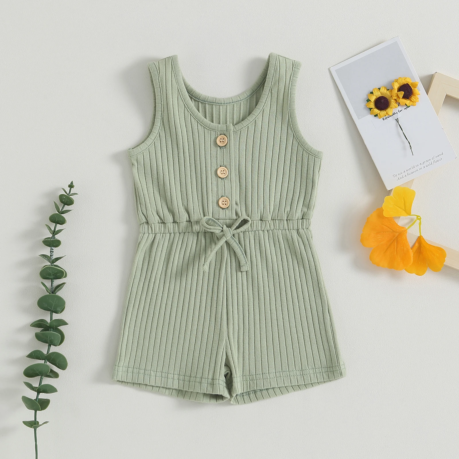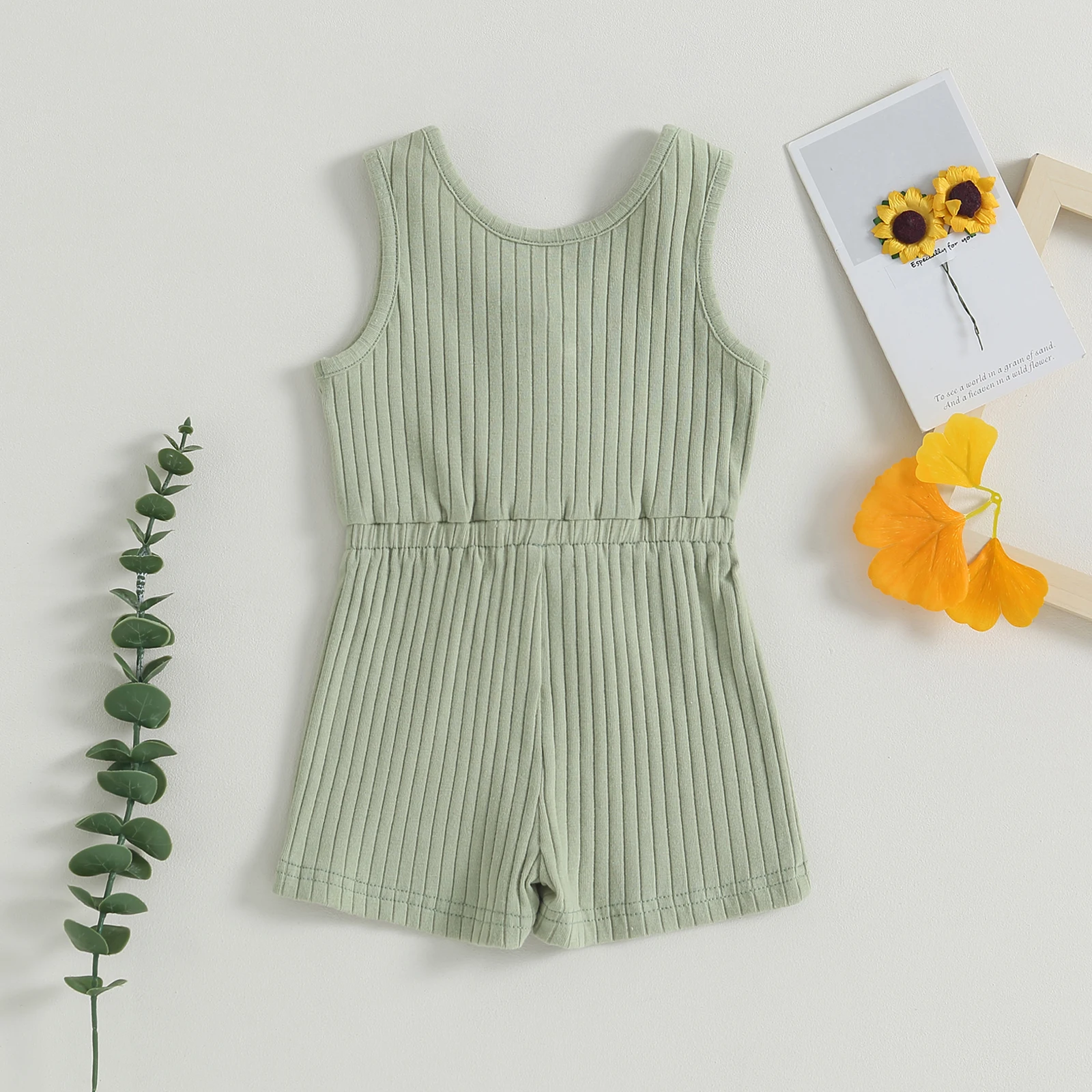 Baby Girl Sleeveless Ribbed Romper Solid Color Summer Jumpsuit Overall Shorts for Newborn Toddler Clothes