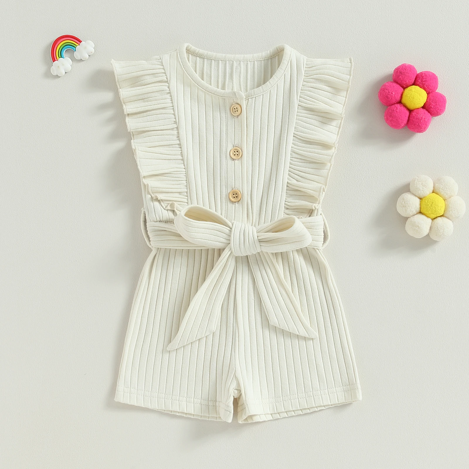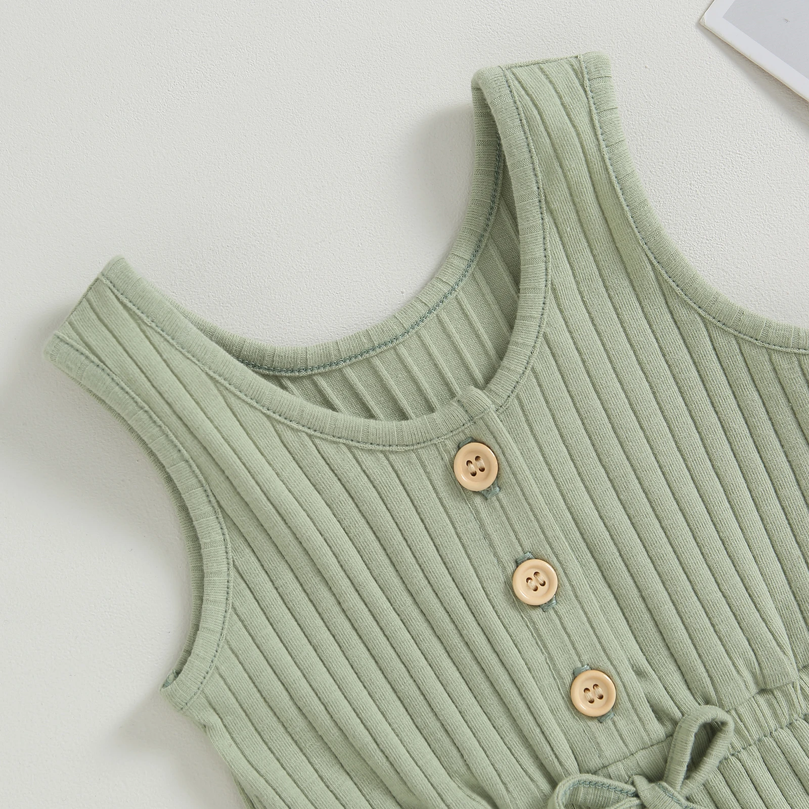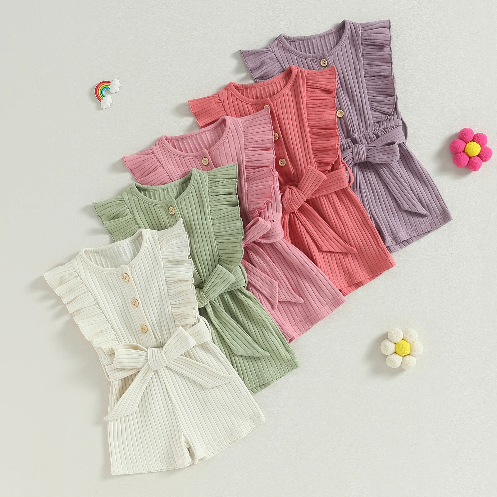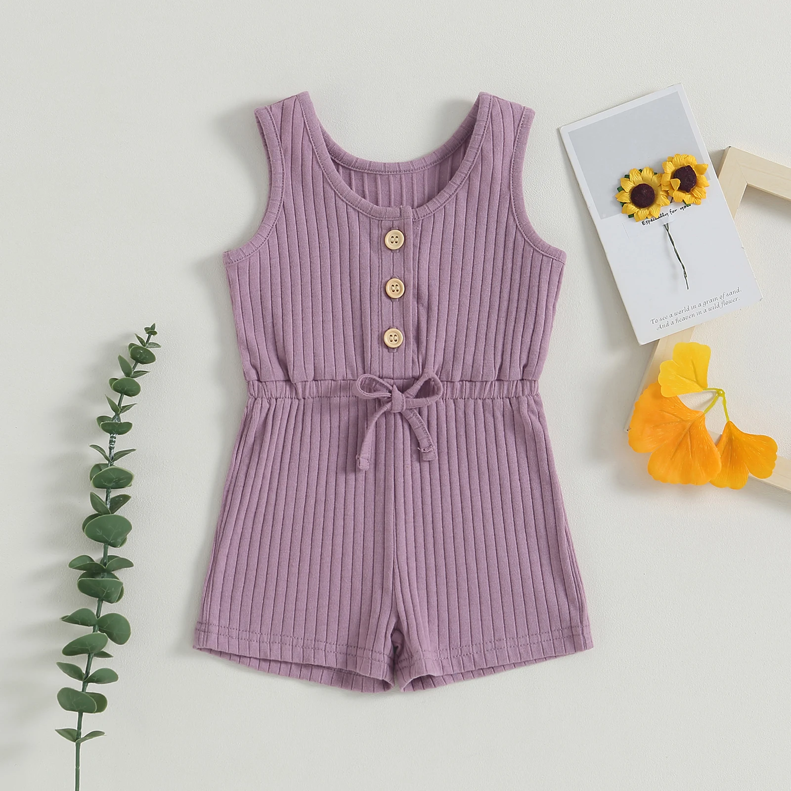 Baby Girl Sleeveless Ribbed Romper Solid Color Summer Jumpsuit Overall Shorts for Newborn Toddler Clothes