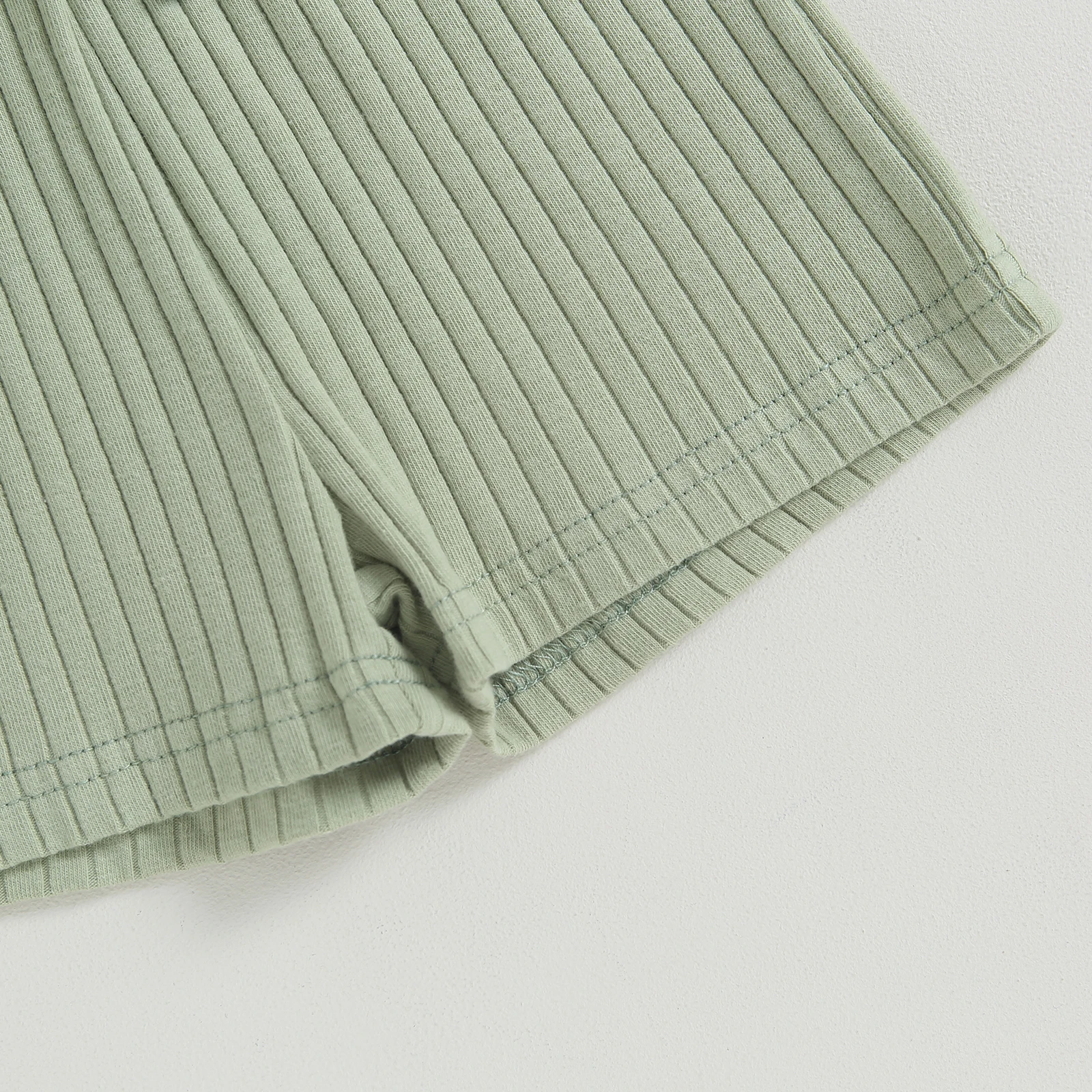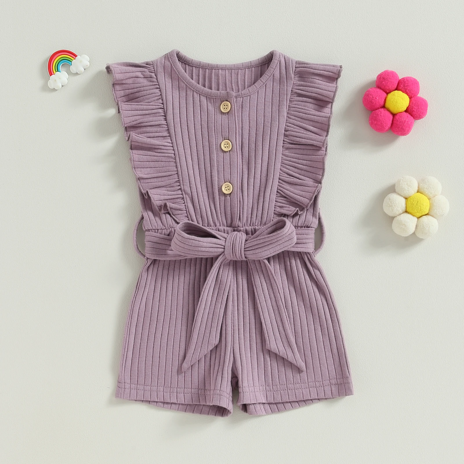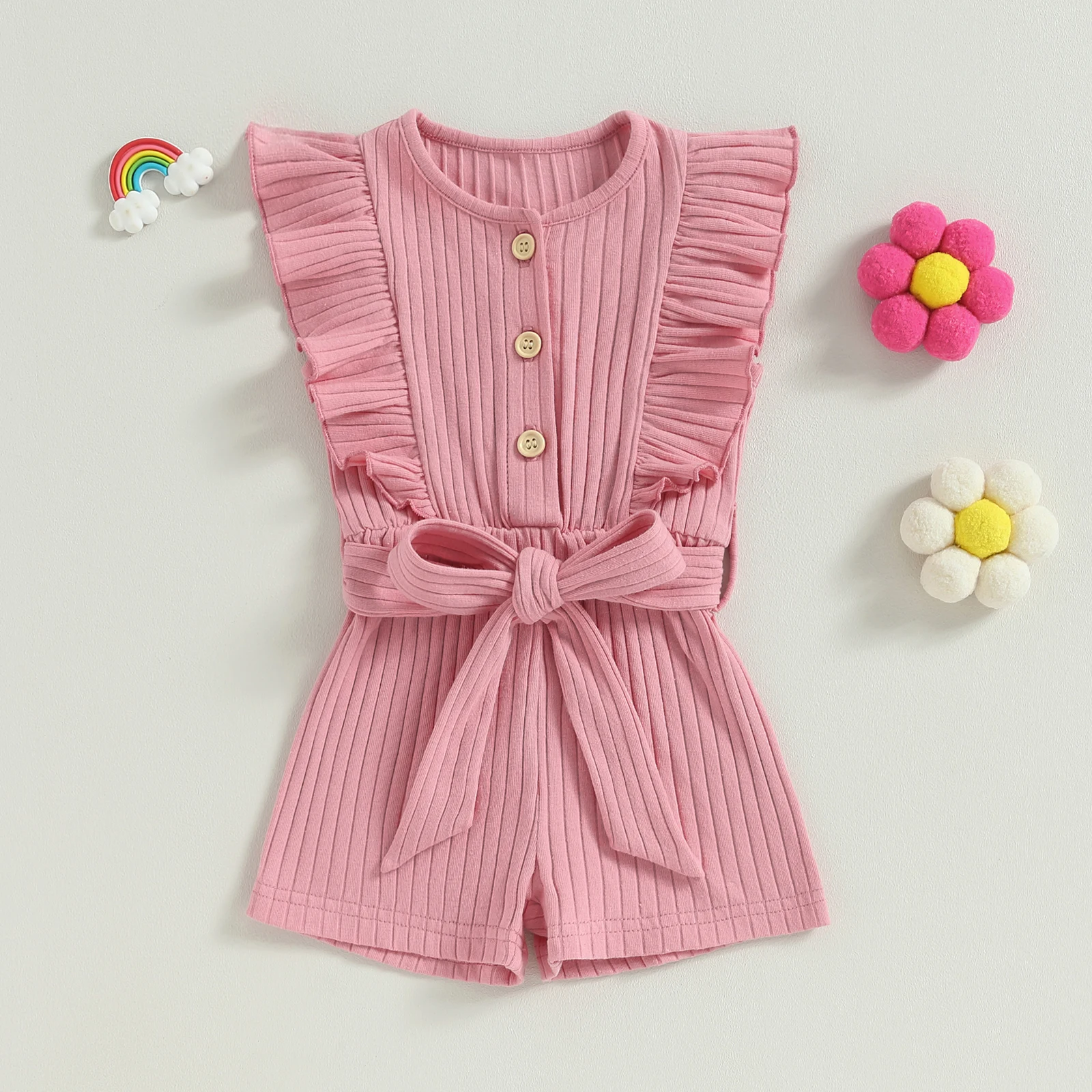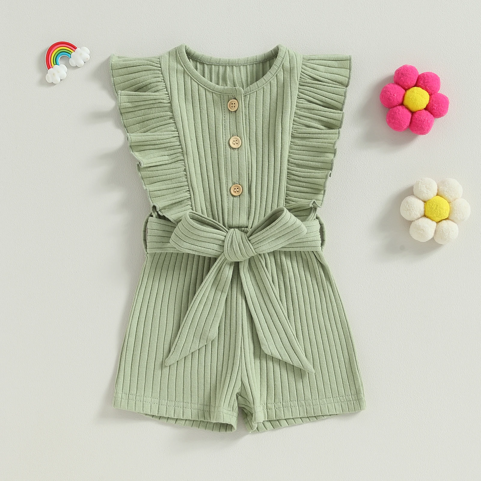 Baby Girl Sleeveless Ribbed Romper Solid Color Summer Jumpsuit Overall Shorts for Newborn Toddler Clothes