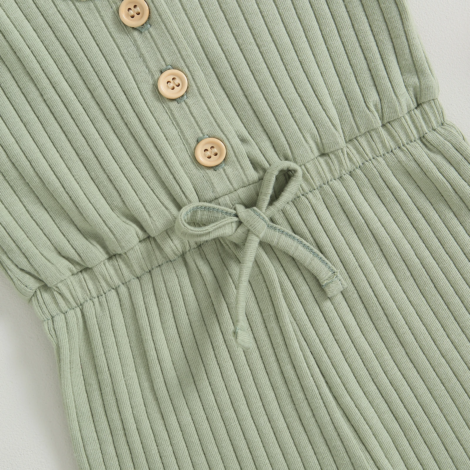 Solid colors, button and crew neck, drawstring waist, shorts design, ribbed rompers, baby sleeveless romper, rompers for toddler girls, the perfect way to add some personality to your child's wardrobe.