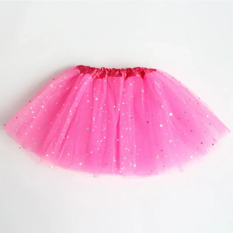 Summer Kids Baby Star Glitter Dance Tutu Skirt For Girl Sequin 3 Layers Tulle Toddler Lace Pettiskirt Children Chiffon 2-8T