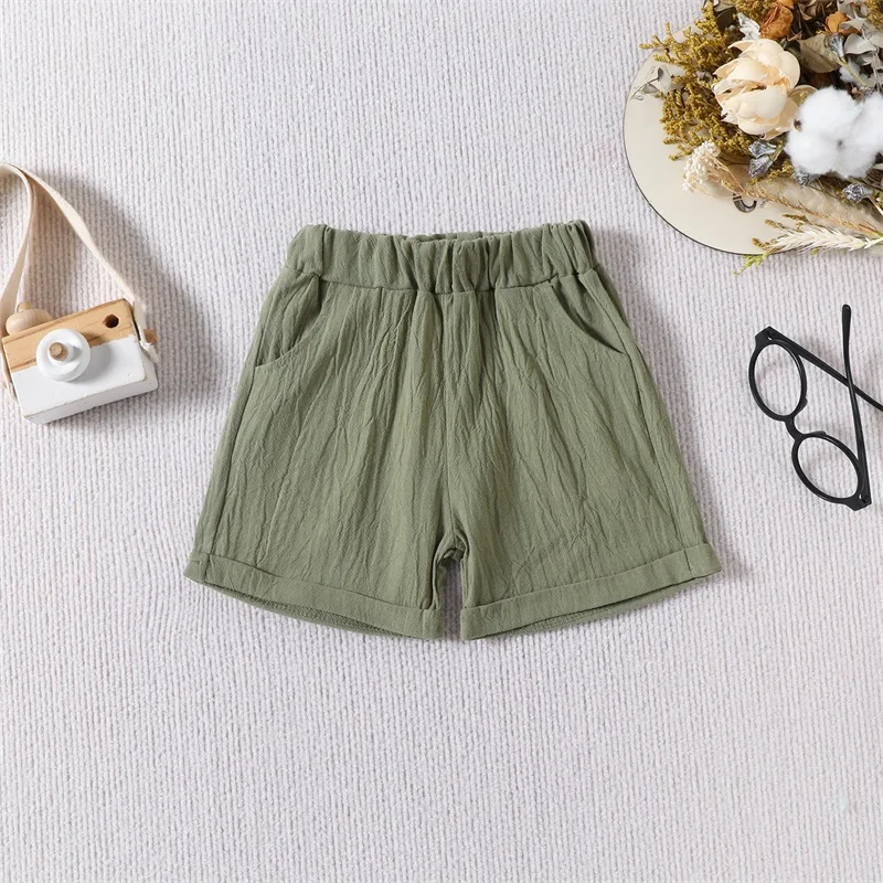 Baby Girl Shorts Casual Elastic Waistband Folded Hem Solid Color Summer Shorts with Pockets Infant Toddler Little Girl ClothesSize(cm)