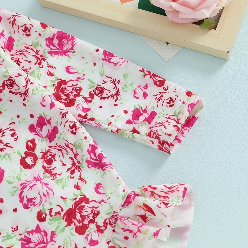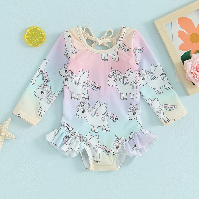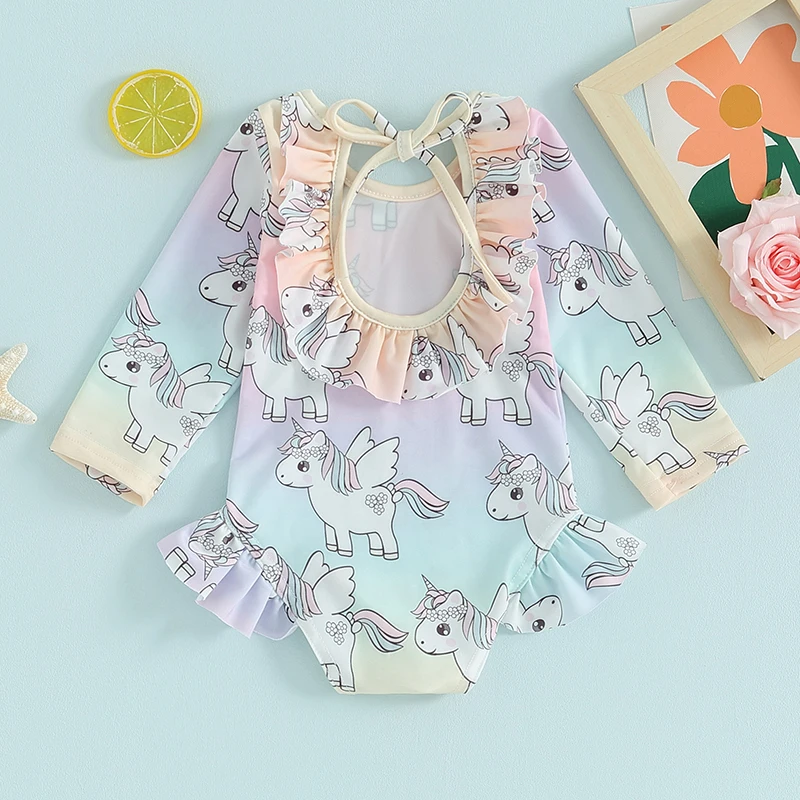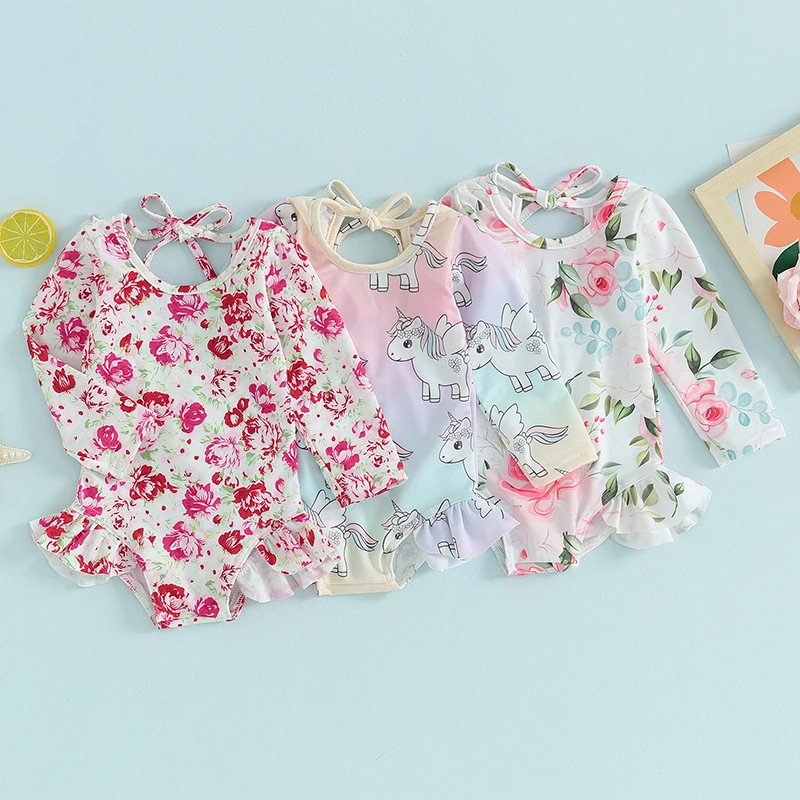 Toddler Baby Girl Swimsuit Floral Ruffle Long Sleeve Swimwear Rash Guard Bathing Suit Kids Beach Outfit