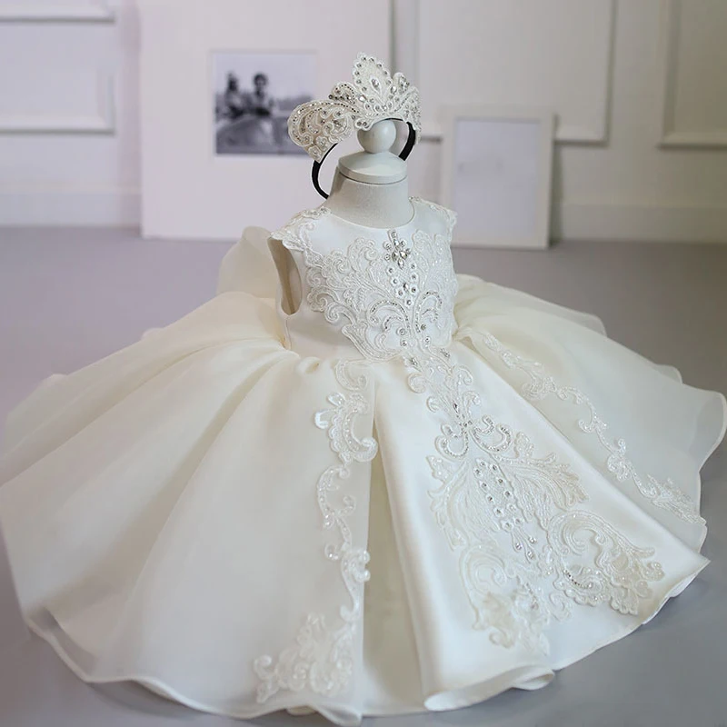 Toddler Infant White Pink Princess Party Dress Newborn Baptism 1 Year Birthday Tutu Baby Girl Clothes Christening Summer Dresses