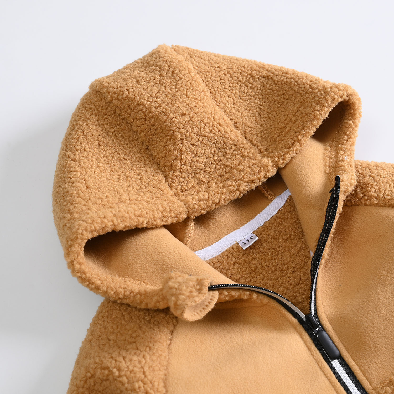 Winter Children Hooded Warmth Fleece Lined Zip Jackets Girls Boys Therme Cotton Outerwear School Kids Outfit Top Coats 3-14Years