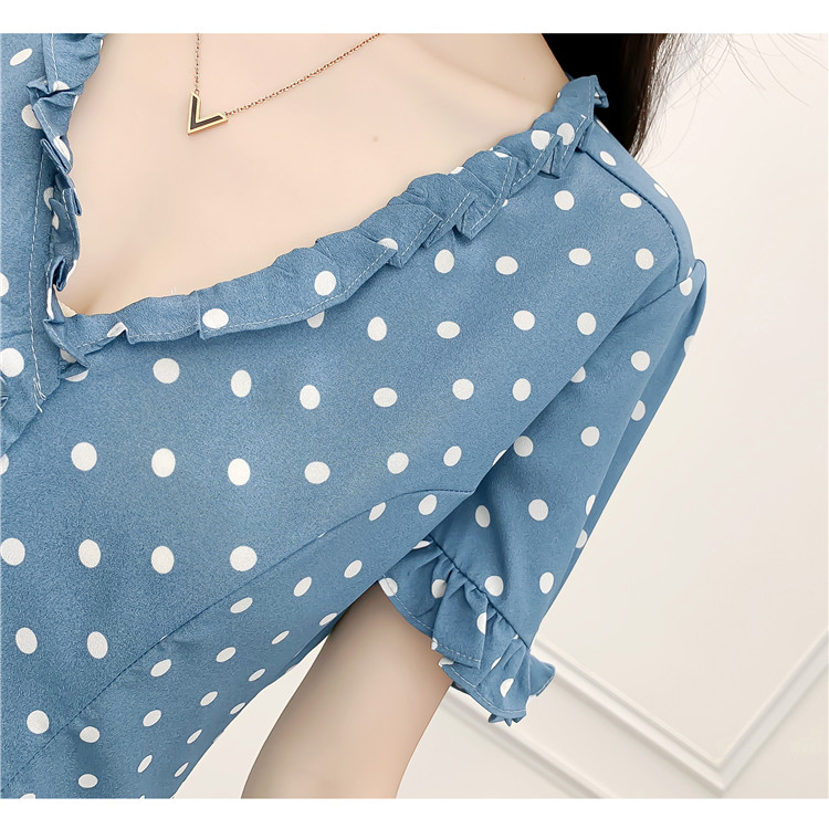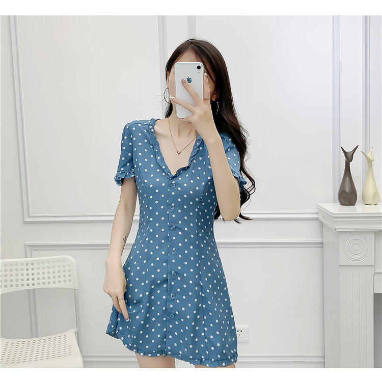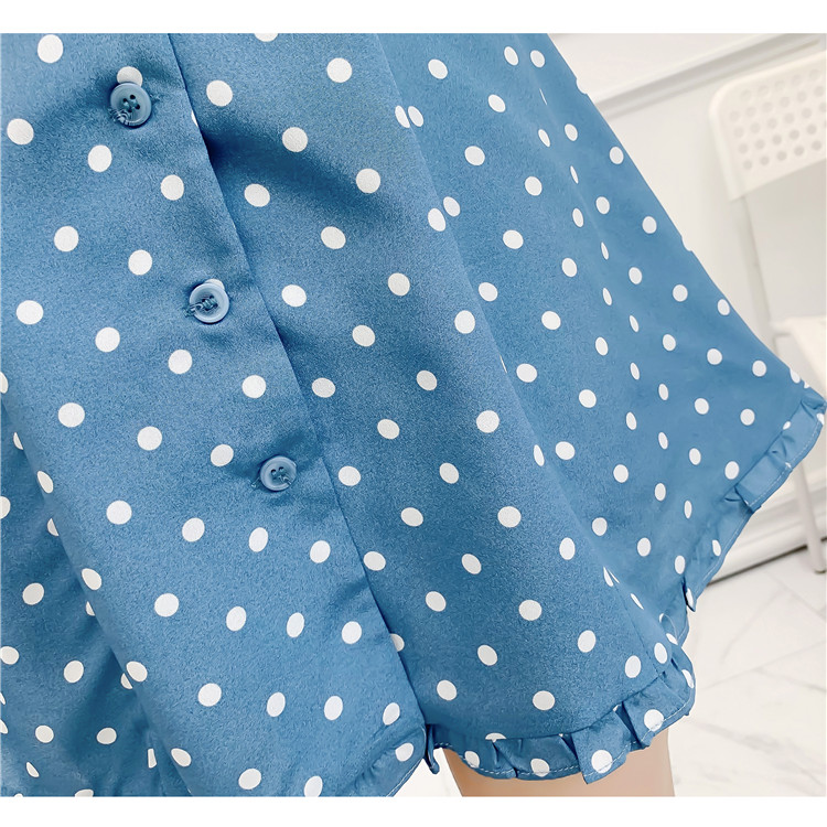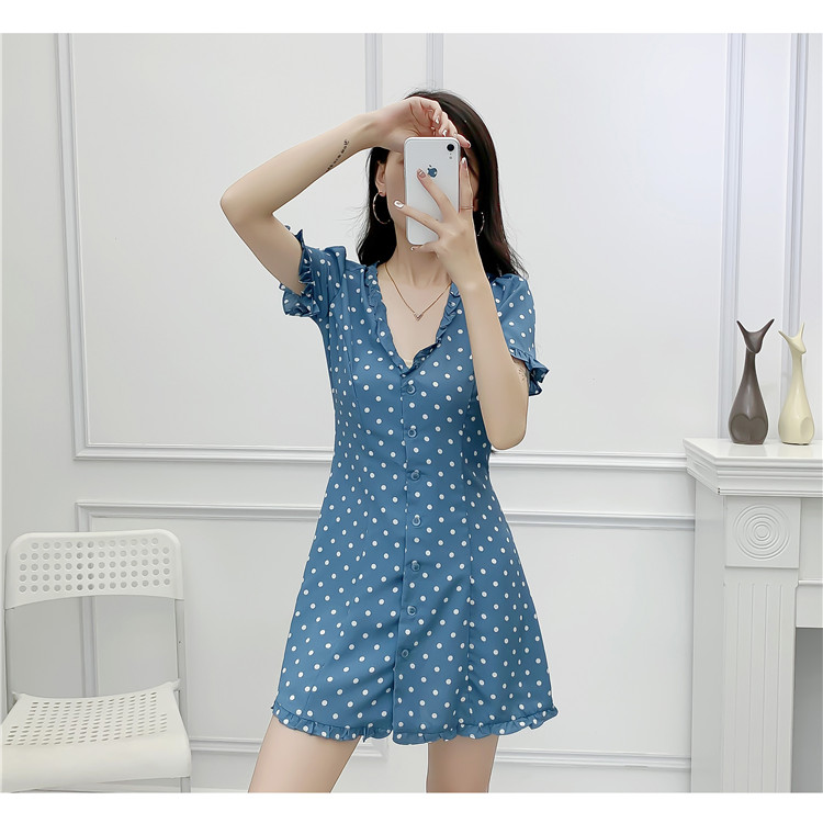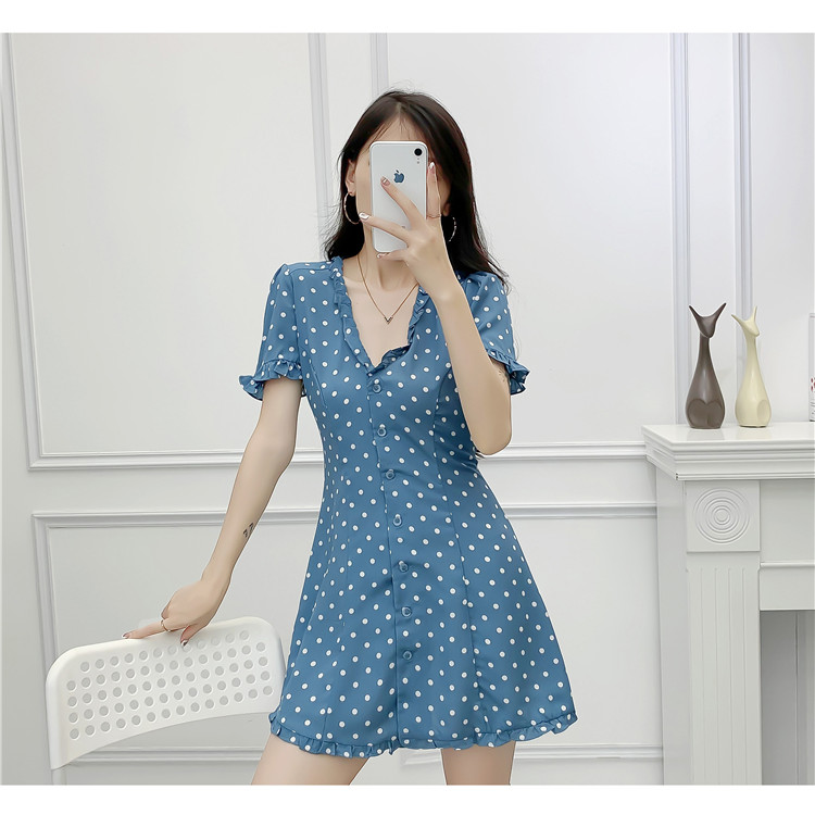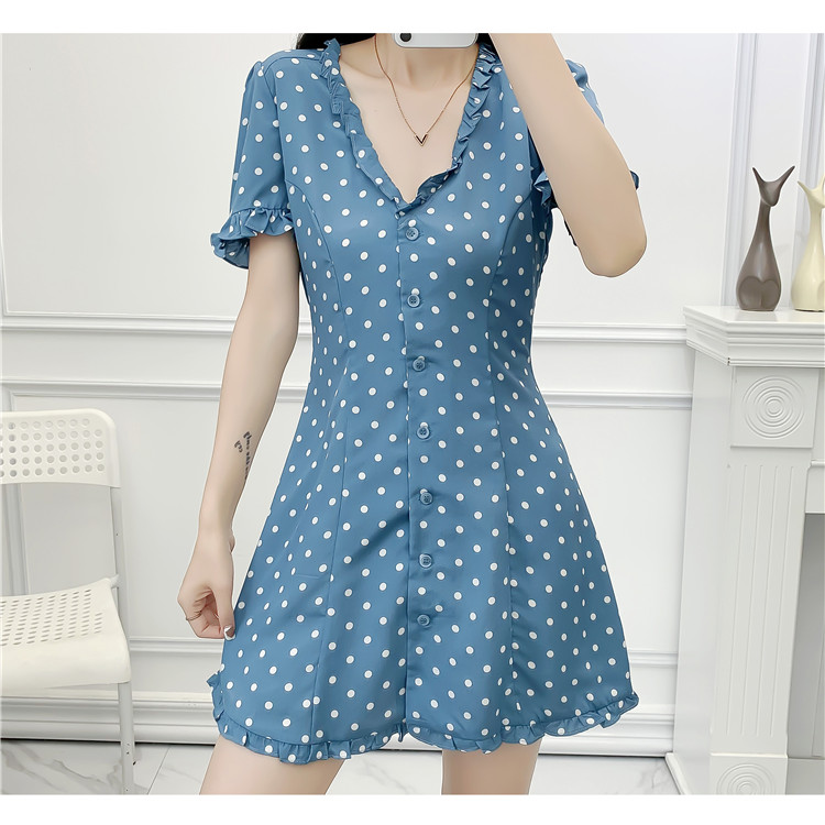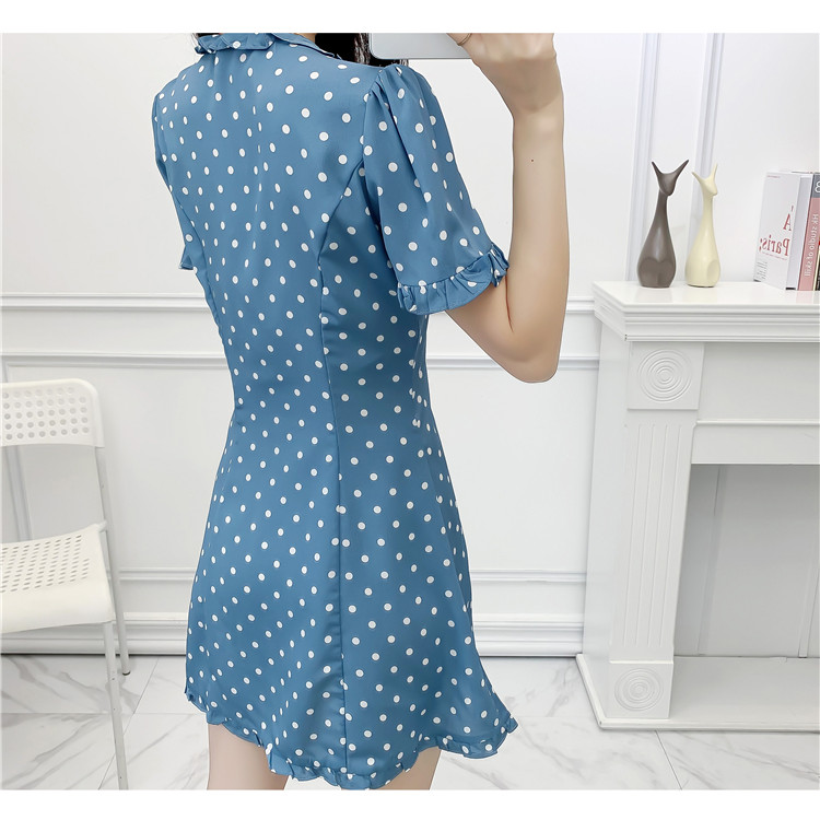 A fashionable lady dress. The fabric feels soft and comfortable, with good draping feeling and good wearing effect. Fit cut, upper body slim Slim Looking. Contrast Color polka dot pattern retro Artsy. Baby fungus trim is fresh and sweet. Age-reducing all-match product, if you like it, place an order quickly ~ ~