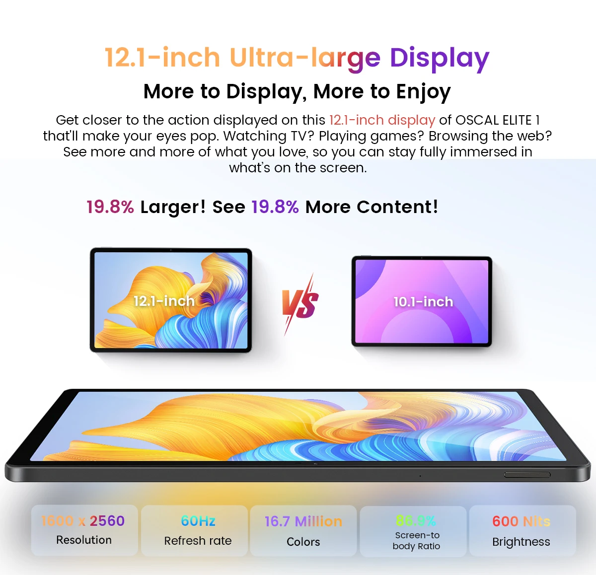 12.1" Laptop-like Display! 6nm Laptop-like Productivity !