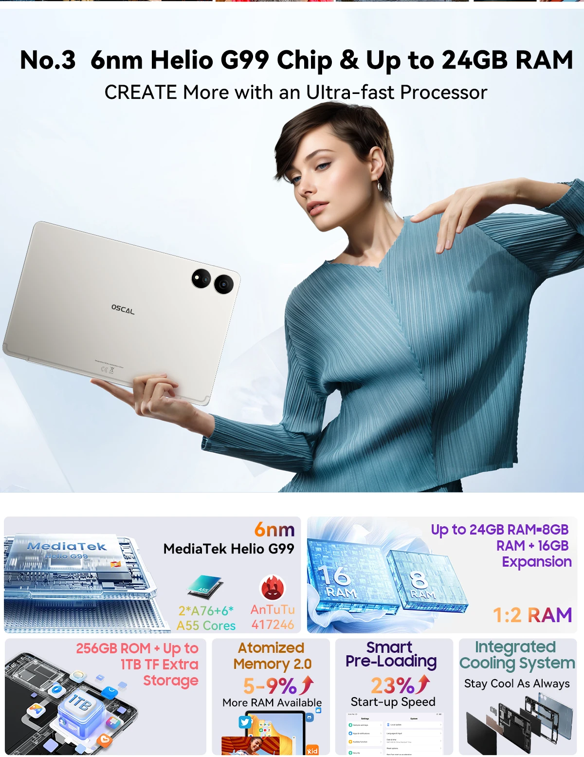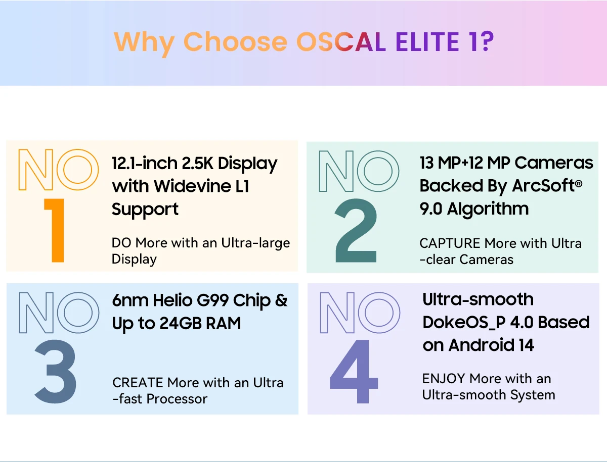 World Premiere Blackview Oscal ELITE 1 Tablet 12.1 inch Display 8GB 256GB MTK Helio G99 8800mAh Battery 33W Fast Charging