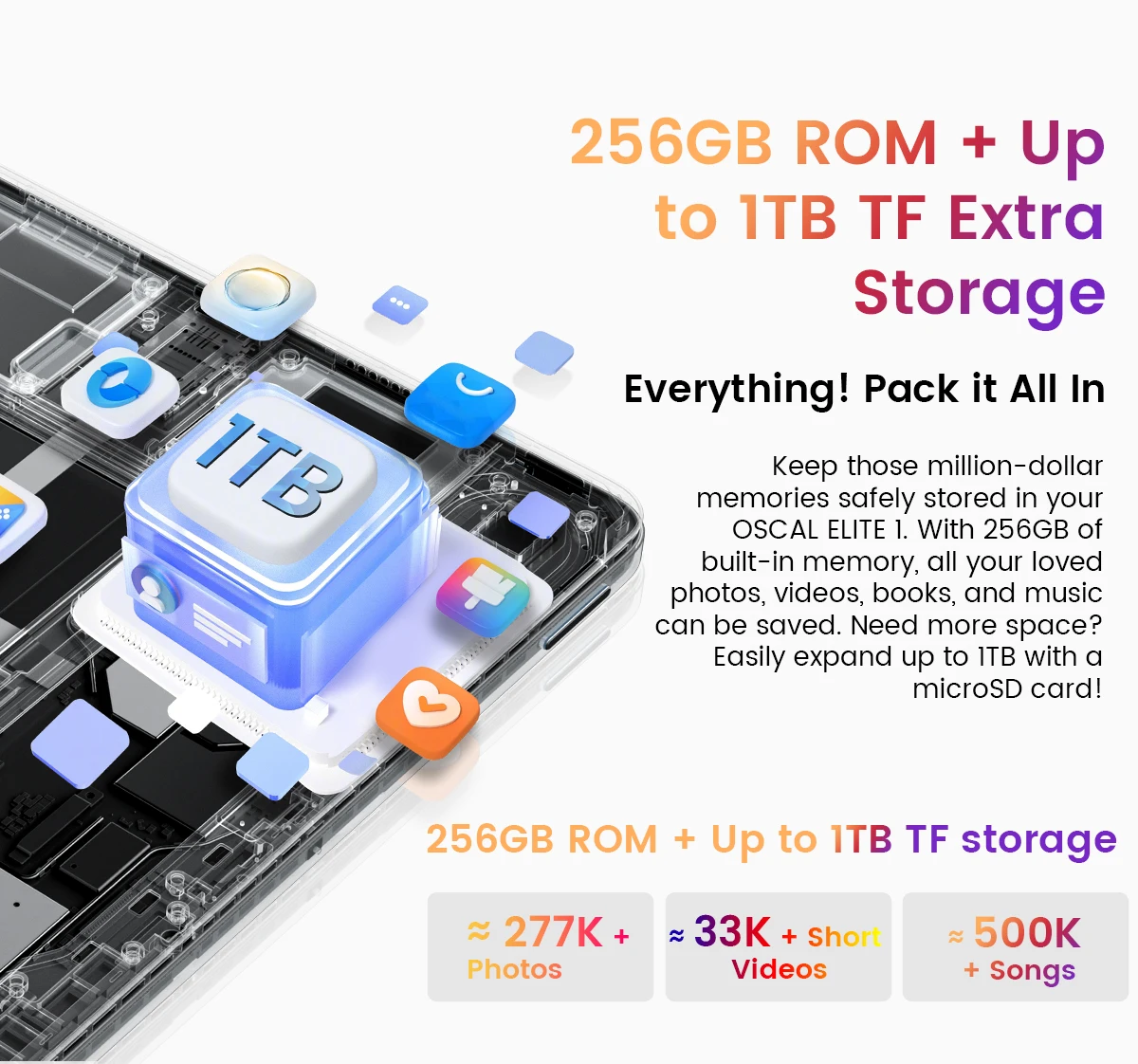 256GB ROM + Up to 1TB TF Extra Storage | Up to 24GB RAM=8GB RAM + 16GB Expansion