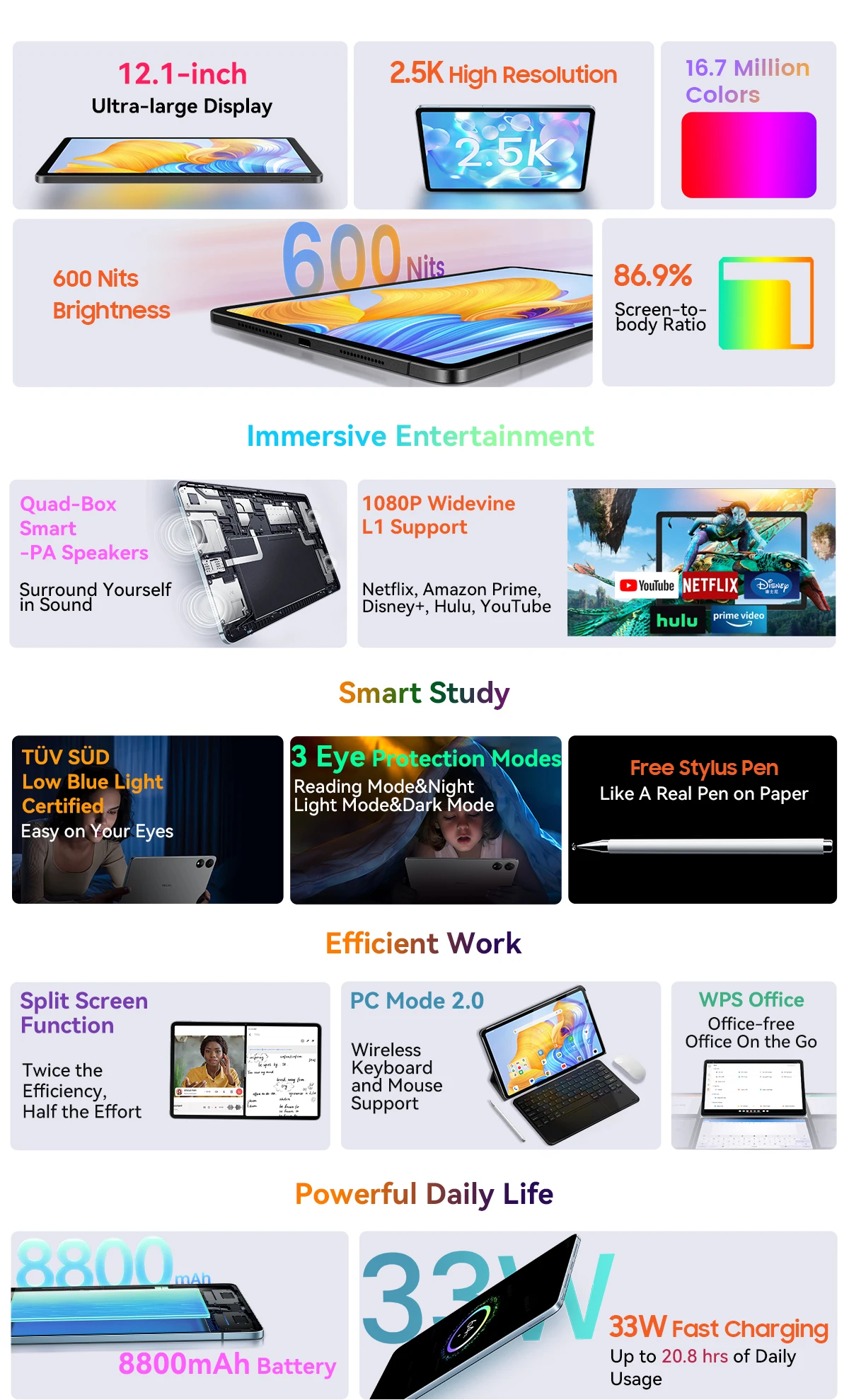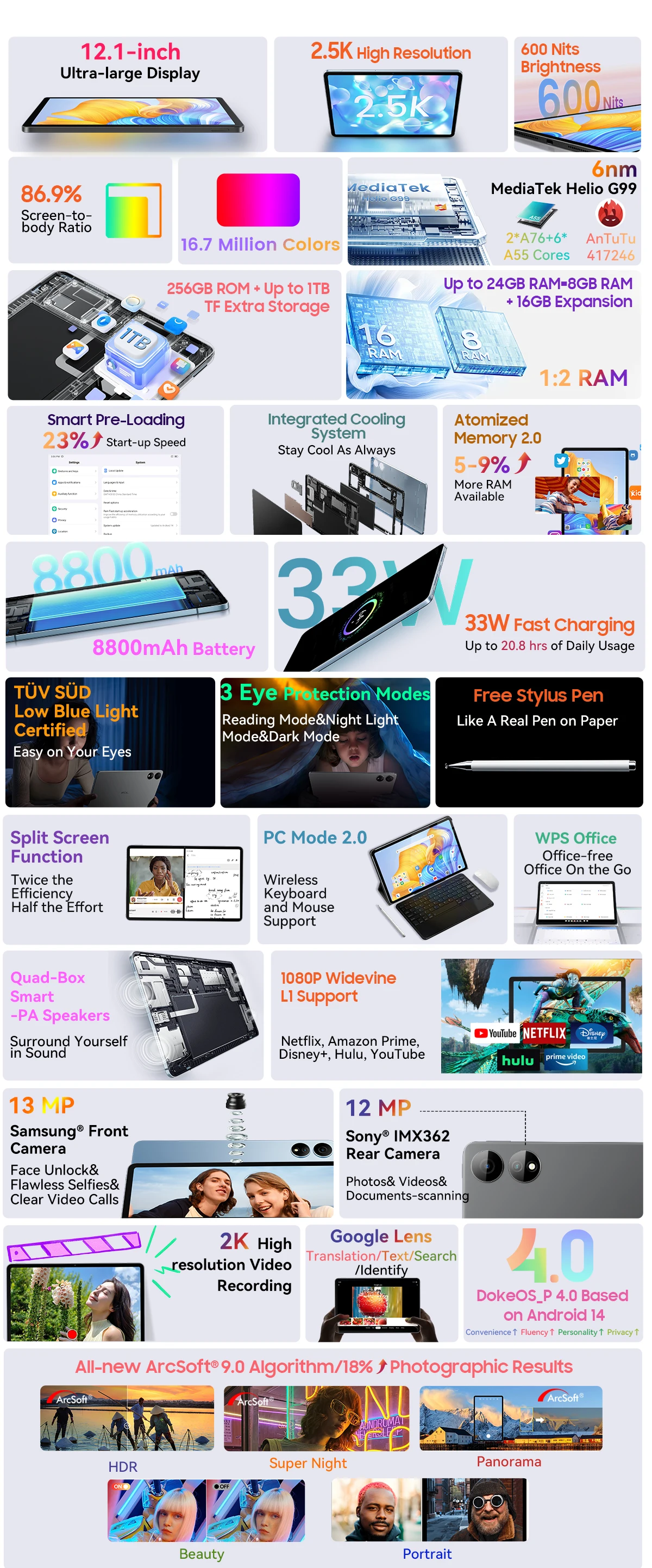12.1-inch Ultra-large Display |2.5K High Resolution | MediaTek Helio G99