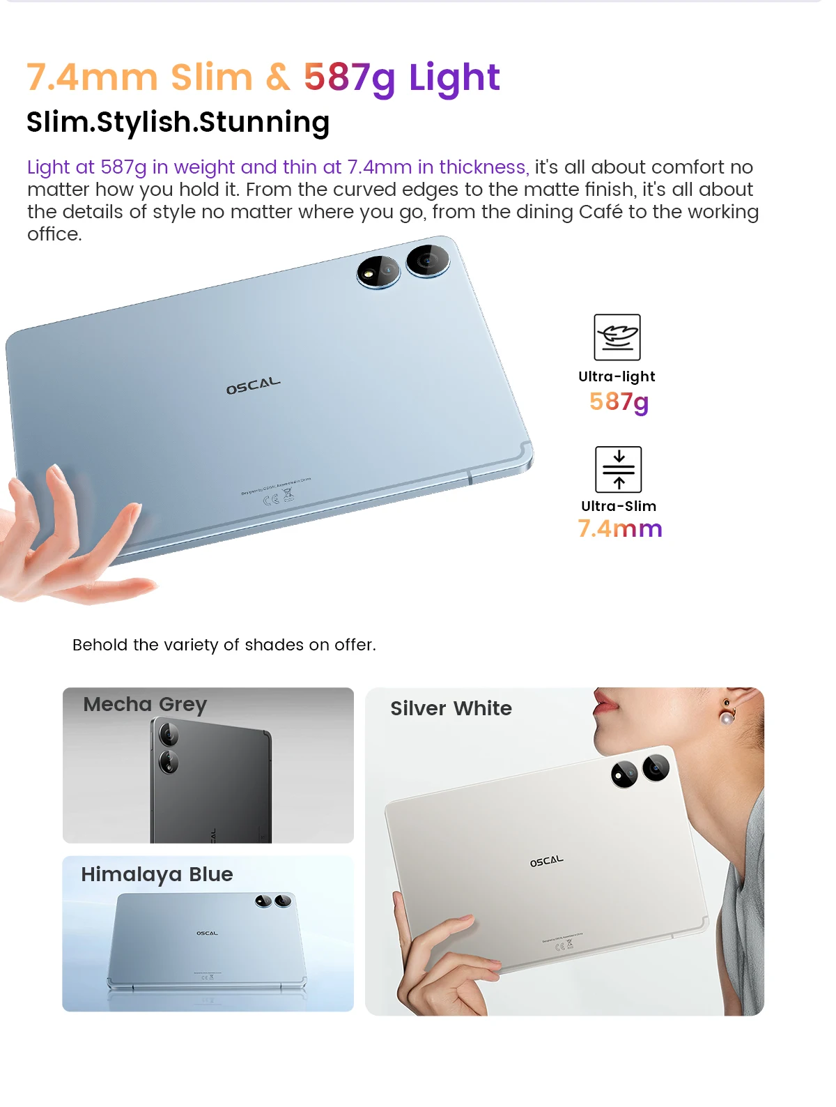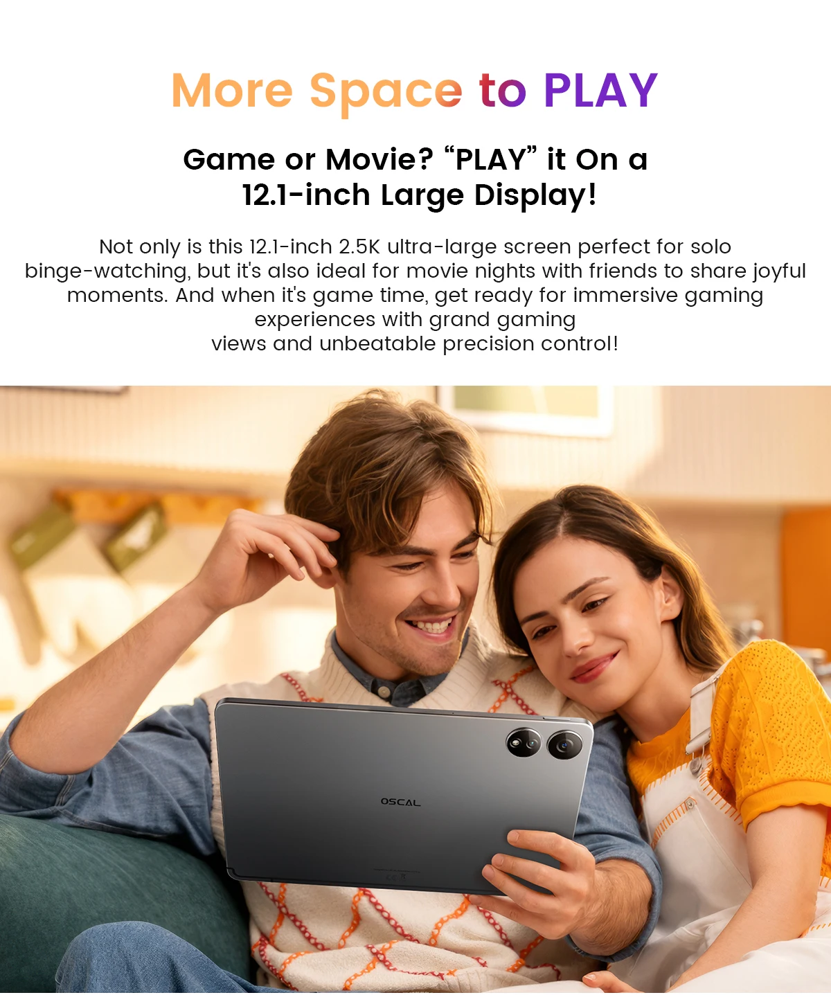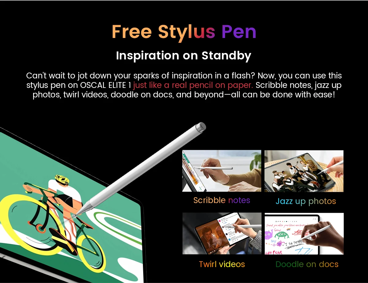 Get closer to the action displayed on this 12.1-inch display of OSCAL ELITE 1 that'll make your eyes pop. Watching TV? Playing games? Browsing the web? See more and more of what you love, so you can stay fully immersed in what's on the screen.