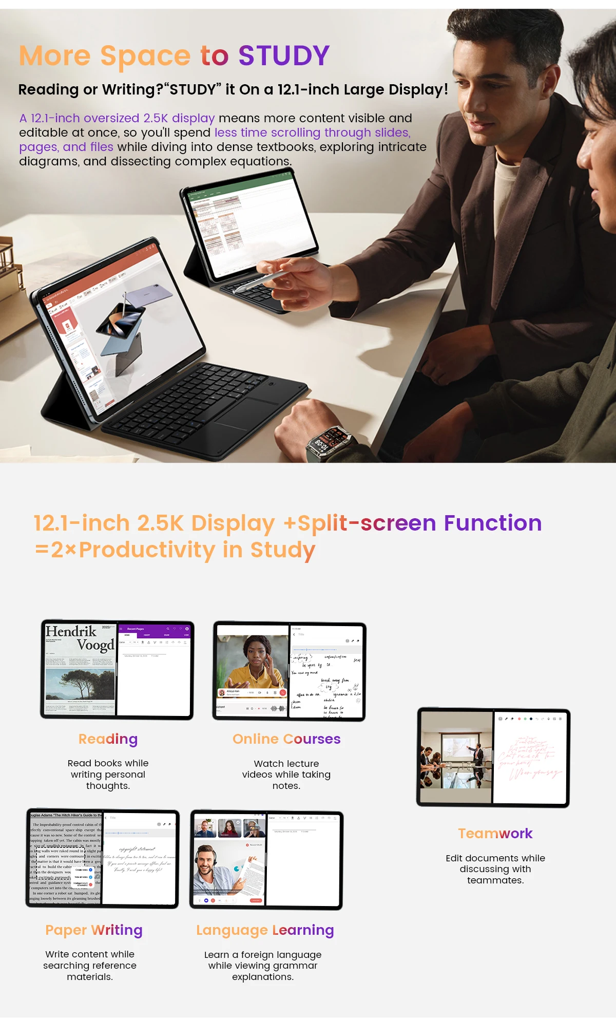 Reading or Writing?"STUDY" On a 12.1-inch 2.5K Large Display!