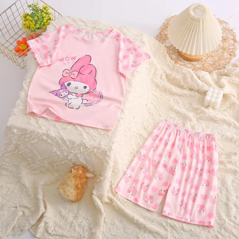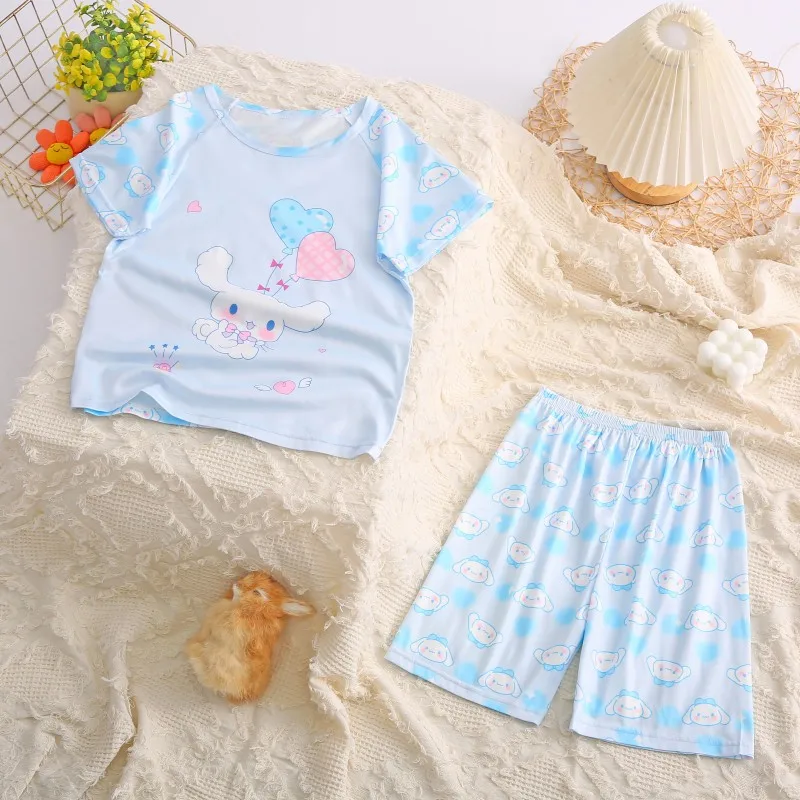 Yugui Dog Cartoon Girls Summer Pajamas Short Sleeved Melody Middle School Boys And Girls Home Clothing Set